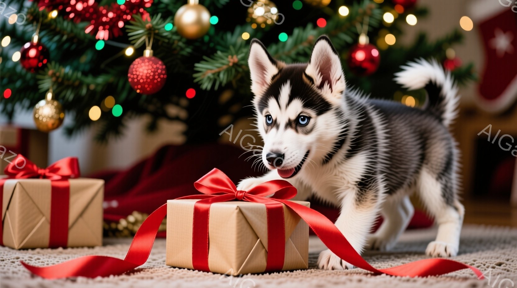 この無料AI生成画像「シベリアンハスキーが雪景色の中で上を向いて遠吠えをしている。背景には、クリスマスの飾り付けがされた丸太小屋と、雪をまとった木々が広がり、夜空には星が輝いている。全体的に、冬の静寂と神秘的な雰囲気が漂っている。」は、2025年10月24日に作成されました。 サイズは 1664×928px の高解像度で、商用利用も可能なフリー素材として提供しています。