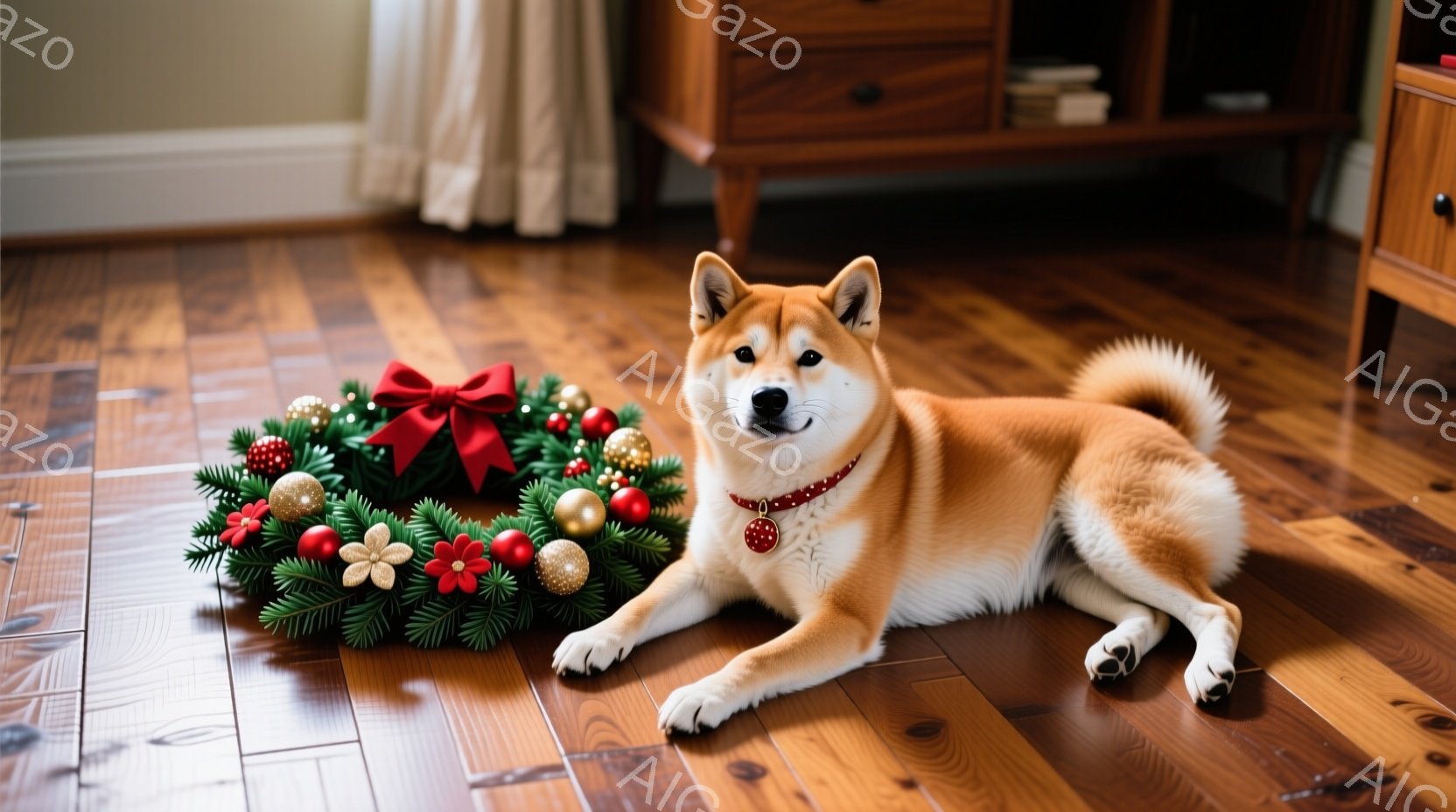 この無料AI生成画像「雪景色の中、柴犬がまっすぐ前を見て座っています。周囲にはクリスマスの飾り付けが施された街路があり、点灯されたランタンが暖かく照らしています。全体的に穏やかで、冬のホリデーシーズンらしい雰囲気です。」は、2025年10月24日に作成されました。 サイズは 1664×928px の高解像度で、商用利用も可能なフリー素材として提供しています。