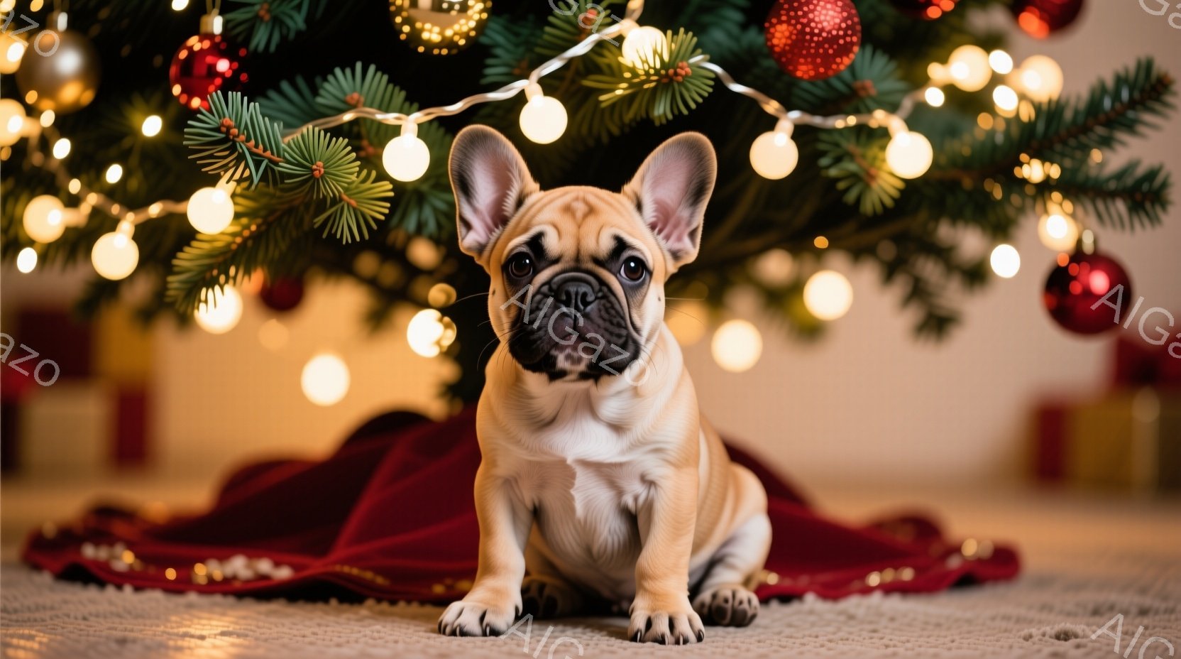 この無料AI生成画像「暖炉の前で、サンタの帽子をかぶったクリーム色のフレンチブルドッグが、床のラグの上で横たわっています。暖炉の中には火が燃えており、壁にはクリスマスストッキングが飾られています。全体的に暖かく、居心地の良いクリスマスの雰囲気が漂っています。」は、2025年10月24日に作成されました。 サイズは 1664×928px の高解像度で、商用利用も可能なフリー素材として提供しています。