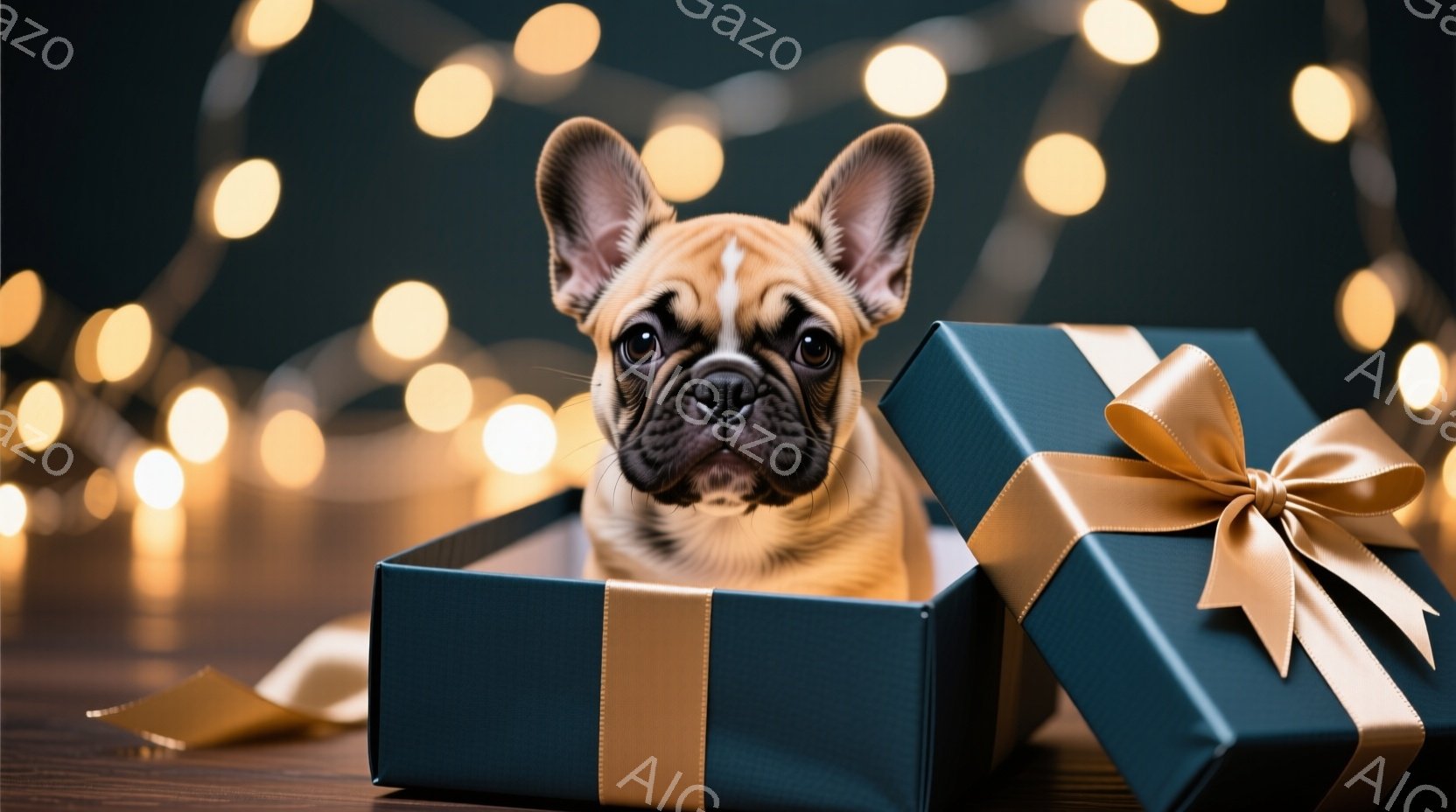 この無料AI生成画像「白いフレンチブルドッグが、雪で覆われた家の階段に座っています。赤い首輪をつけ、まっすぐ前を見つめており、どこか誇らしげな表情をしています。背景にはクリスマスリースが飾られた玄関ドアがあり、両脇には明かりが灯ったランタンが置かれ、雪が舞う冬の暖かい雰囲気を醸し出しています。」は、2025年10月24日に作成されました。 サイズは 1664×928px の高解像度で、商用利用も可能なフリー素材として提供しています。