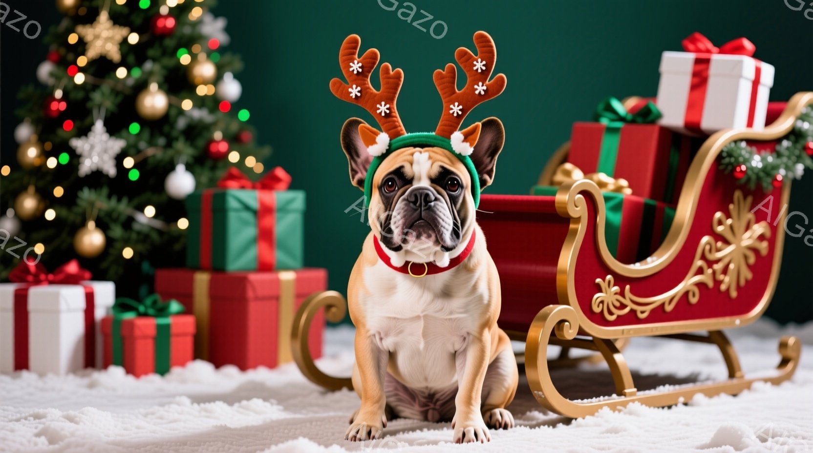 この無料AI生成画像「籐編みのバスケットの中に、クリーム色のフレンチブルドッグが横たわっています。周りには、赤い実のついた葉、松ぼっくり、そして金と赤のクリスマスオーナメントが配置され、クリスマスの雰囲気を醸し出しています。犬はリラックスした表情で、穏やかで温かい雰囲気が漂っています。」は、2025年10月24日に作成されました。 サイズは 1664×928px の高解像度で、商用利用も可能なフリー素材として提供しています。