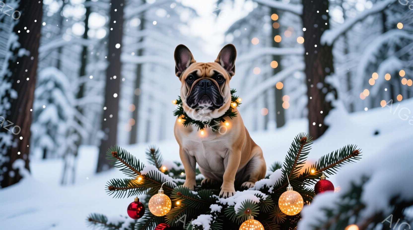 この無料AI生成画像「クリーム色のフロアに籐製のバスケットと、その中に赤い、金色の、緑色のクリスマスオーナメントが置かれています。バスケットの横には、愛らしい子犬が横たわり、正面を見てカメラに向かって穏やかな表情を浮かべています。背景には、ぼやけたクリスマスツリーの光が輝き、暖かくお祝いムードを醸し出しています。」は、2025年10月24日に作成されました。 サイズは 1664×928px の高解像度で、商用利用も可能なフリー素材として提供しています。