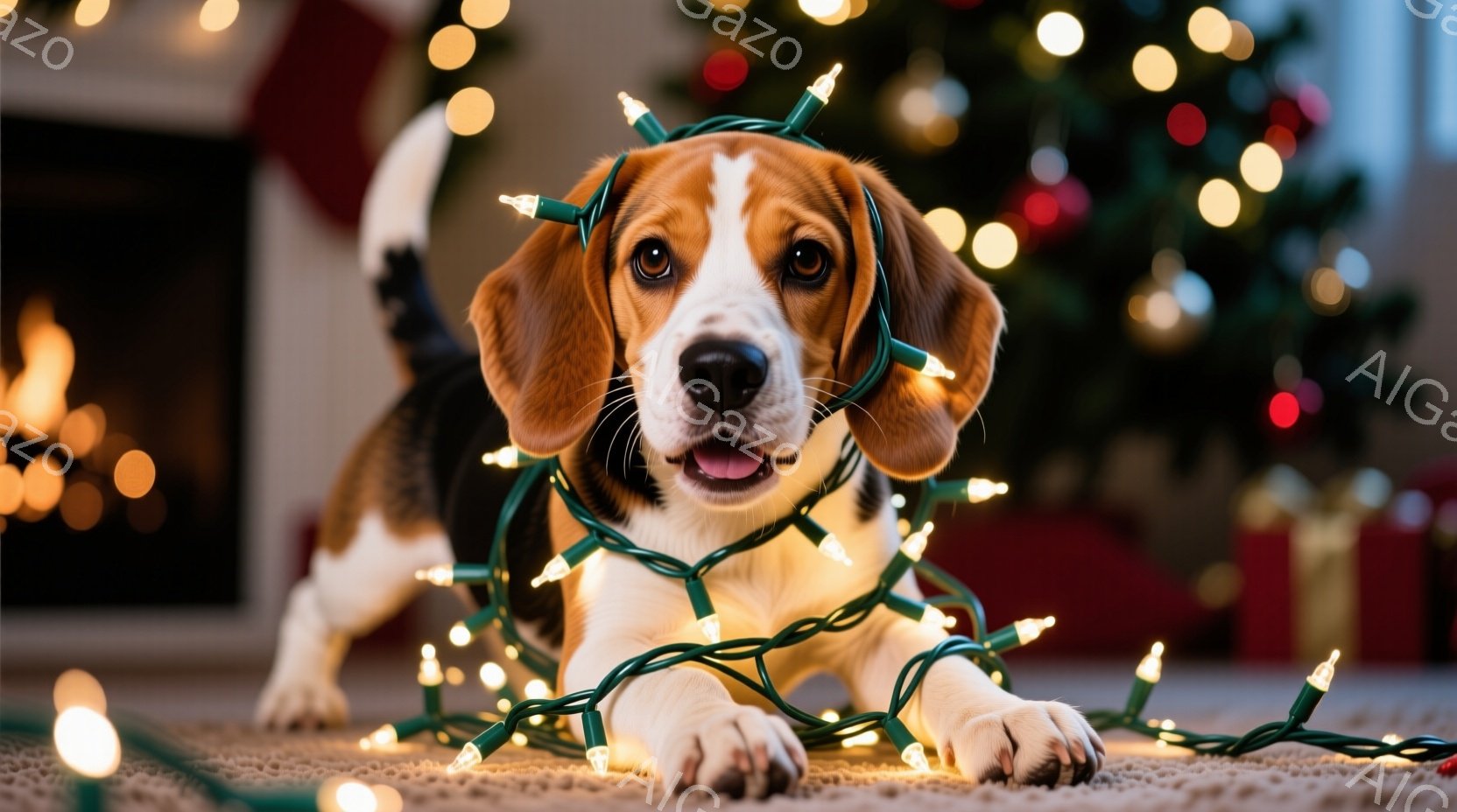 この無料AI生成画像「白い雪に覆われた町並みを背景に、ビーグル犬が赤いそりに寄り添って横たわっています。そりにはテディベアが座っており、犬はリラックスした様子で前方を向いています。背景にはクリスマスツリーが輝き、建物は装飾され、冬の暖かく幻想的な雰囲気が漂っています。」は、2025年10月24日に作成されました。 サイズは 1664×928px の高解像度で、商用利用も可能なフリー素材として提供しています。