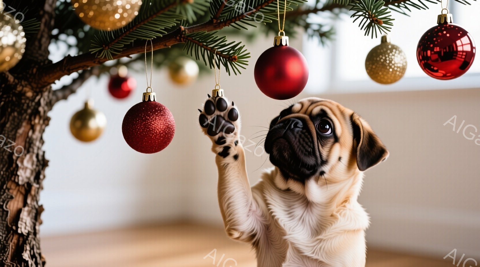 この無料AI生成画像「明るい色のラグの上に、ベージュ色のパグが横たわっています。パグはリラックスした表情で、少しだけ顔を上げてこちらを見ています。背景には木の壁とソファがあり、暖炉のようなランタンが置かれており、全体的に温かく落ち着いた雰囲気です。」は、2025年10月24日に作成されました。 サイズは 1664×928px の高解像度で、商用利用も可能なフリー素材として提供しています。