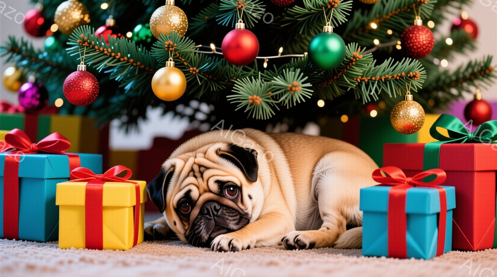 この無料AI生成画像「パグが頭にトナカイの角飾りをつけて座っており、少し困ったような表情をしています。背景には赤いそり、プレゼントの箱、そしてキラキラと輝くクリスマスツリーの飾りが見え、雪が敷かれた床の上に座っています。全体的に暖かく、楽しいクリスマスの雰囲気が漂っています。」は、2025年10月24日に作成されました。 サイズは 1664×928px の高解像度で、商用利用も可能なフリー素材として提供しています。