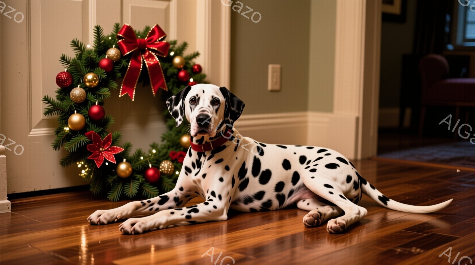 この無料AI生成画像「白い斑点模様のダルメシアンの子犬が、赤いリボンで飾られたプレゼントボックスの周りにいます。子犬は前足を使ってプレゼントボックスに近づき、遊び心に満ちた表情でリボンを引っ張ろうとしています。背景には、ぼやけたクリスマスツリーと、暖かく輝く電飾があり、全体的に祝祭的で楽しい雰囲気が漂っています。」は、2025年10月24日に作成されました。 サイズは 1664×928px の高解像度で、商用利用も可能なフリー素材として提供しています。