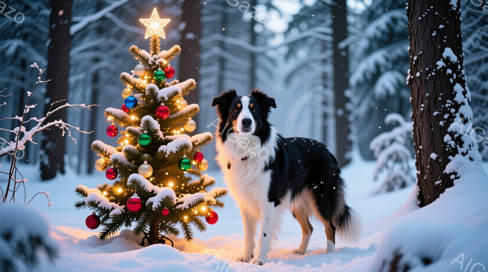 この無料AI生成画像「暖炉のそばにあるクリスマスツリーの周りにプレゼントが置かれ、黒と白の毛並みを持つ子犬がプレゼントの赤いリボンを嗅いでいます。子犬は好奇心旺盛な表情で、片方の前足をプレゼントに伸ばして、興味津々でリボンを調べています。背景には光るクリスマスツリーが飾られ、暖かい家庭的な雰囲気が漂っています。」は、2025年10月24日に作成されました。 サイズは 1664×928px の高解像度で、商用利用も可能なフリー素材として提供しています。