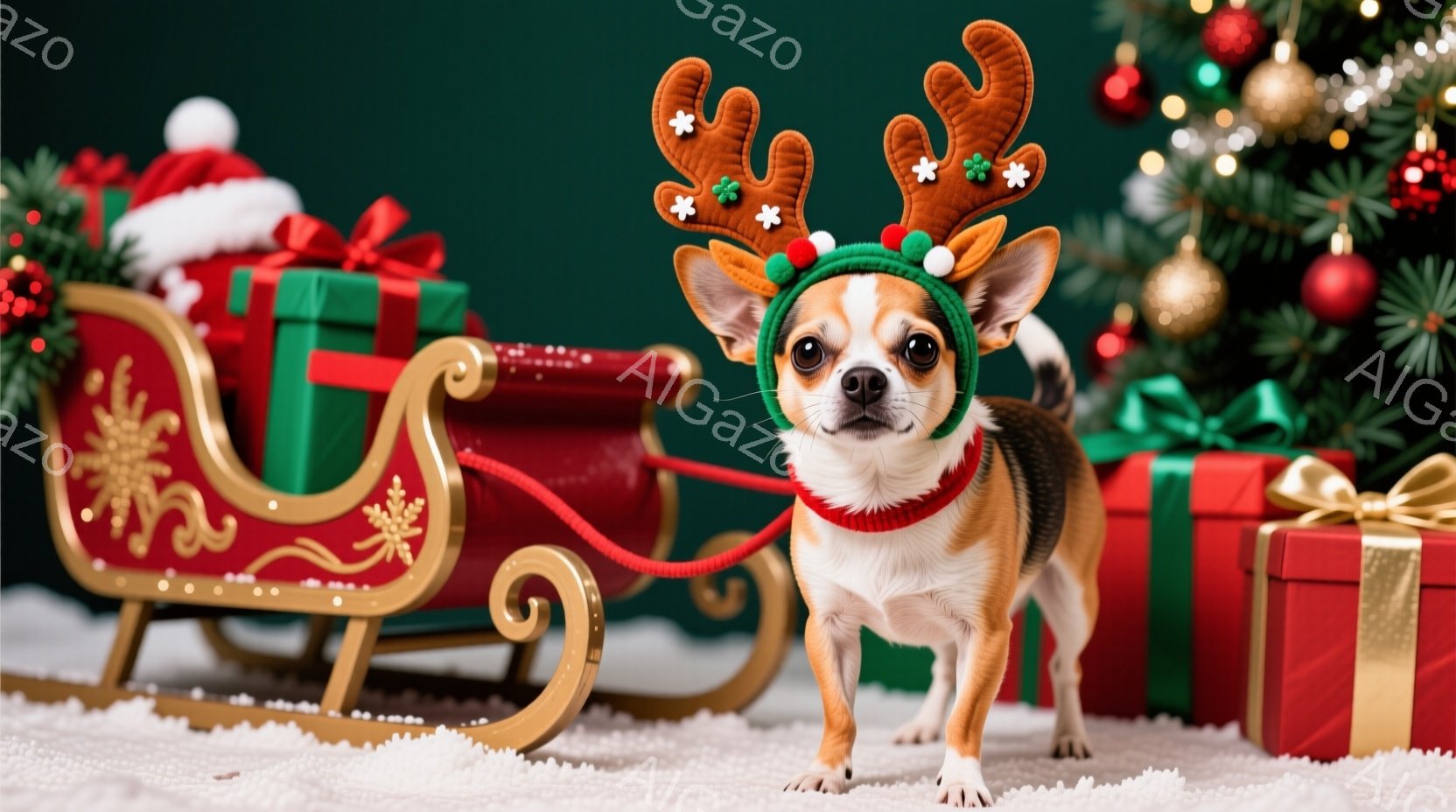 この無料AI生成画像「明るい茶色のチワワが、クリスマスオーナメントと松ぼっくりが入った籐のバスケットの隣に横たわっています。犬は前足を伸ばし、少し上目遣いでカメラを見ており、穏やかで可愛らしい表情をしています。背景にはぼやけたクリスマスツリーが見え、全体的に温かく、お祝いの雰囲気です。」は、2025年10月24日に作成されました。 サイズは 1664×928px の高解像度で、商用利用も可能なフリー素材として提供しています。