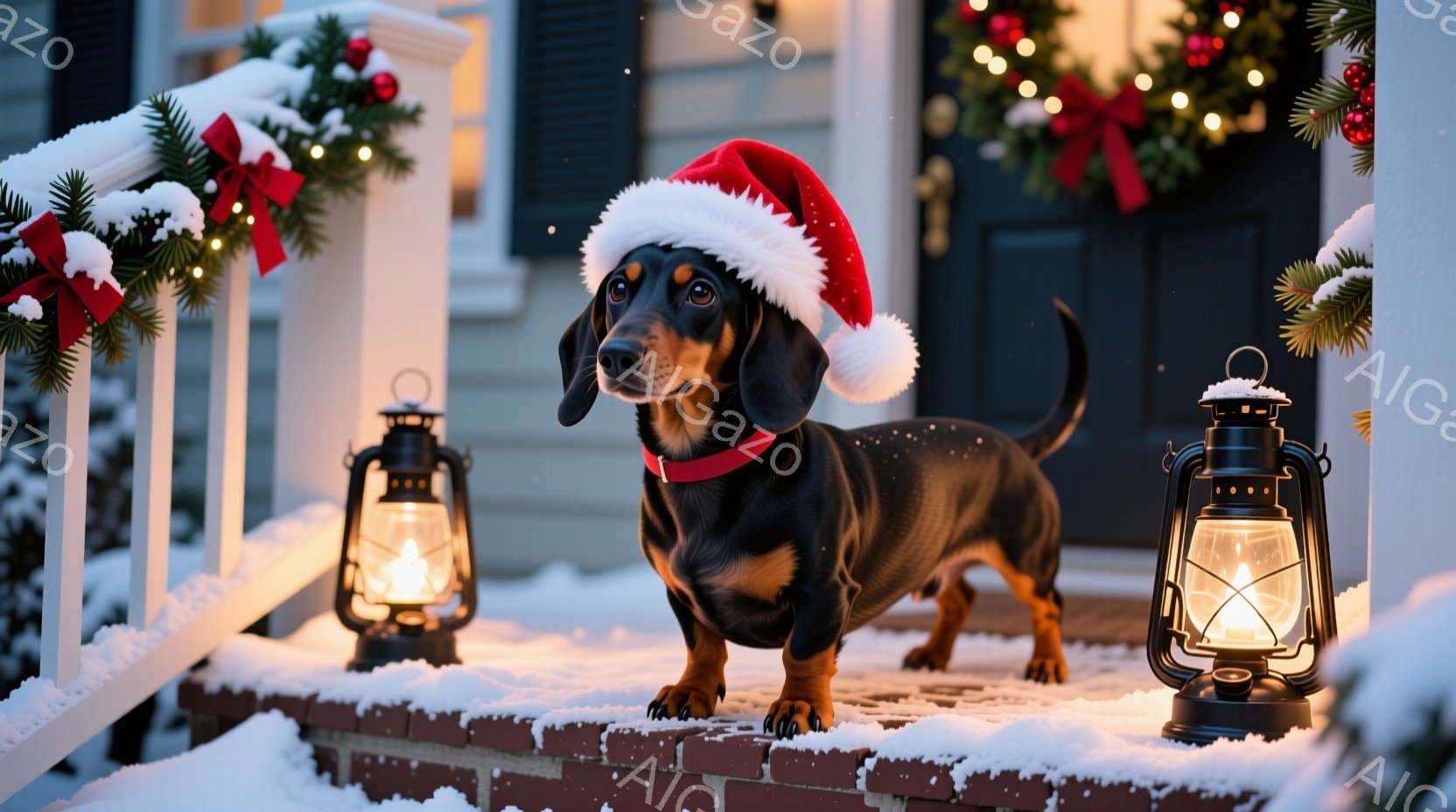 この無料AI生成画像「黒と茶色のダックスフントの子犬が、赤いリボンで結ばれた白いギフトボックスの中から顔を出しています。子犬は好奇心に満ちた表情で、少し上を見ています。背景には、ぼやけたクリスマスツリーの光が散りばめられ、暖かくお祝いムードに包まれています。」は、2025年10月24日に作成されました。 サイズは 1664×928px の高解像度で、商用利用も可能なフリー素材として提供しています。