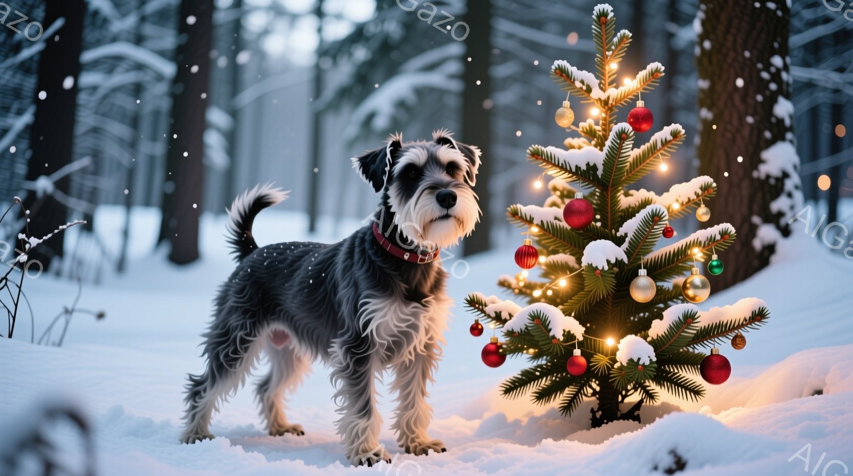 この無料AI生成画像「暖炉のそばのラグの上に、クリスマスツリーのイルミネーションに絡まった小さなテリア犬が横たわっています。犬は黒と白の毛並みで、穏やかな表情を浮かべ、リラックスした様子でイルミネーションに包まれています。背景には、プレゼントやクリスマスツリー、暖炉の火が見え、全体的に暖かく、お祝いムードに満ちた雰囲気です。」は、2025年10月24日に作成されました。 サイズは 1664×928px の高解像度で、商用利用も可能なフリー素材として提供しています。