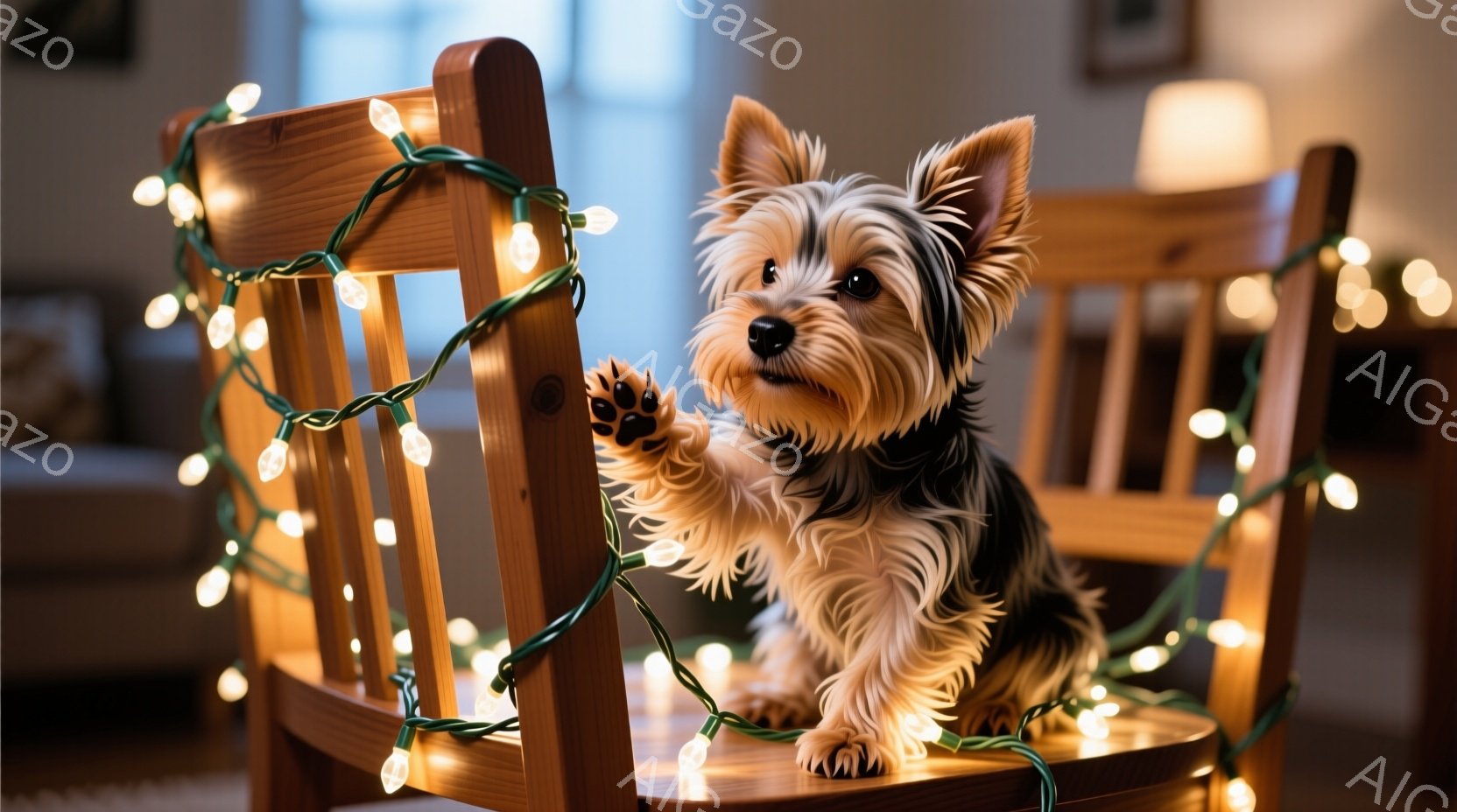 この無料AI生成画像「雪が舞う家の玄関ポーチに、ヨークシャーテリアが座っています。犬は茶色と黒の毛並みで、前をじっと見つめており、少し警戒しているような表情をしています。背景には、リボンで飾られたプレゼントの山が積み上げられ、黒いランタンが犬の隣に置かれ、冬の暖かい雰囲気を醸し出しています。」は、2025年10月24日に作成されました。 サイズは 1664×928px の高解像度で、商用利用も可能なフリー素材として提供しています。