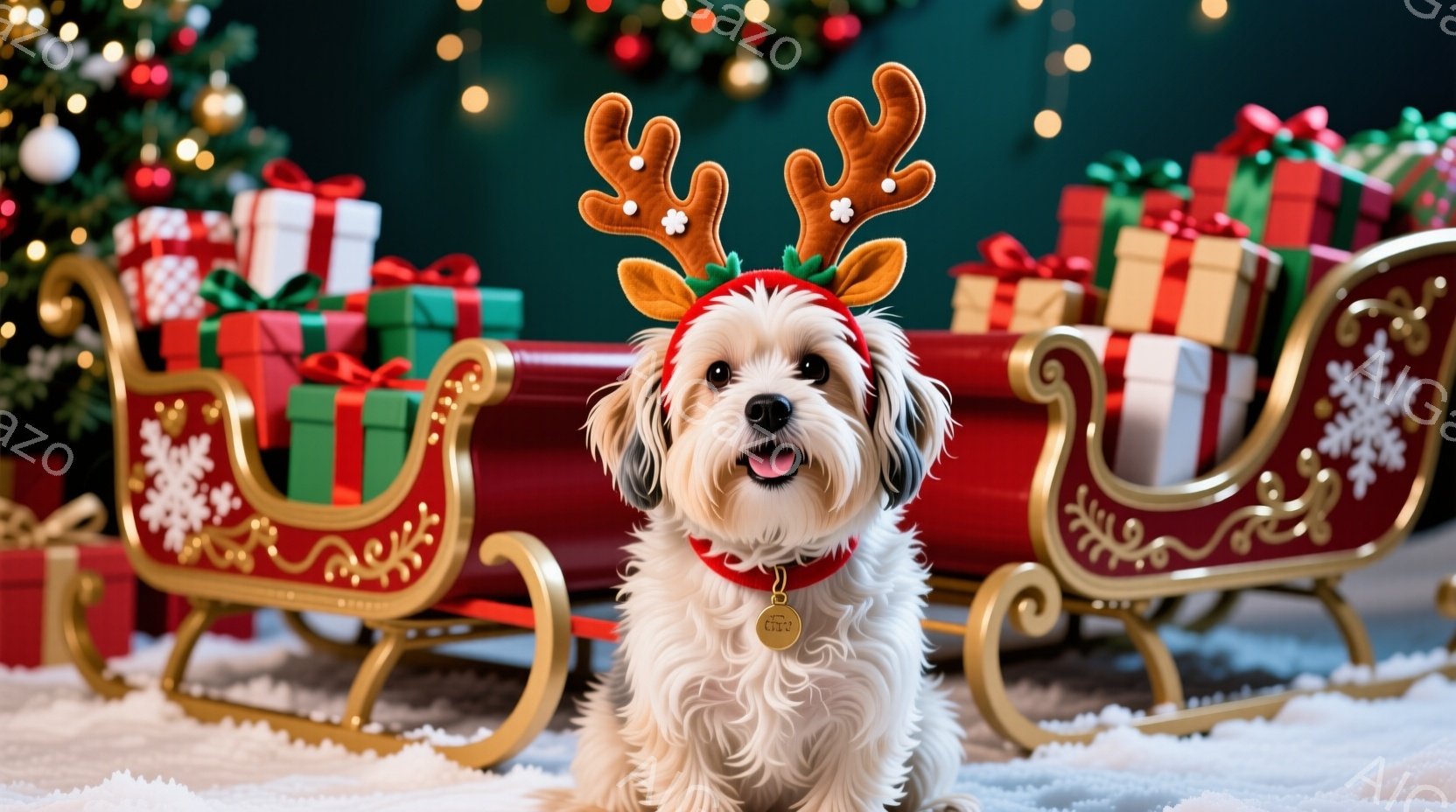 この無料AI生成画像「小さなクリーム色のパピーが、クリスマスオーナメントや松ぼっくりが入った籐のバスケットの横に横たわっています。パピーは前足を伸ばし、少し上目遣いでカメラを見ており、愛らしい表情をしています。背景にはぼやけたクリスマスツリーと装飾が映り、木製のテーブルの上に配置されており、暖かく、お祝いの雰囲気です。」は、2025年10月24日に作成されました。 サイズは 1664×928px の高解像度で、商用利用も可能なフリー素材として提供しています。