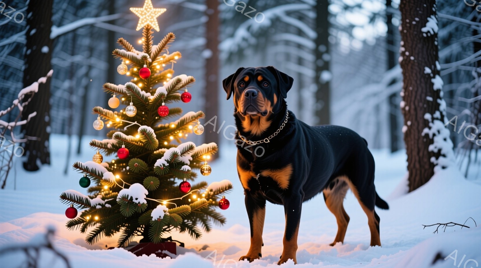 この無料AI生成画像「鮮やかなクリスマスツリーの背景に、茶色と黒の毛並みを持つ子犬が、クリスマスのイルミネーションライトにくるまれて床に横たわっています。子犬は前足を伸ばし、リラックスした表情でカメラを見つめており、暖炉の火が暖かく穏やかな雰囲気を醸し出しています。絨毯の質感とイルミネーションの光が、子犬の愛らしさを引き立て、クリスマスの温かさを表現しています。」は、2025年10月24日に作成されました。 サイズは 1664×928px の高解像度で、商用利用も可能なフリー素材として提供しています。