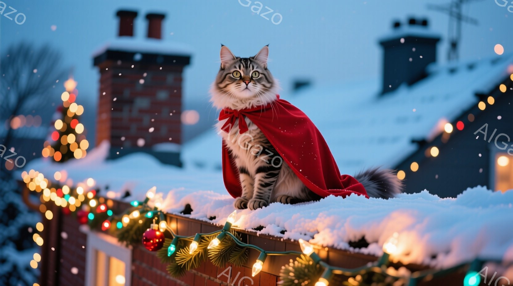 この無料AI生成画像「玄関の前に、美しい灰色の毛並みの猫が堂々と座っています。背景には、クリスマス装飾で飾られた木造の家があり、暖かく優しい光が灯っています。クリスマスツリーの飾りやプレゼントの箱が、祝祭の雰囲気を高めています。」は、2025年10月24日に作成されました。 サイズは 1664×928px の高解像度で、商用利用も可能なフリー素材として提供しています。
