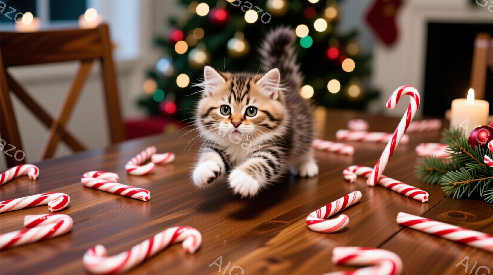 この無料AI生成画像「長毛の縞模様の猫が、クリスマスツリーの下に横たわっています。猫はリラックスした様子で、少し上目遣いにこちらを見ています。背景には、金色のオーナメントで飾られた緑色のクリスマスツリーと、赤い布、そして金色のギフトボックスが見え、暖かい祝日の雰囲気を醸し出しています。」は、2025年10月24日に作成されました。 サイズは 1664×928px の高解像度で、商用利用も可能なフリー素材として提供しています。
