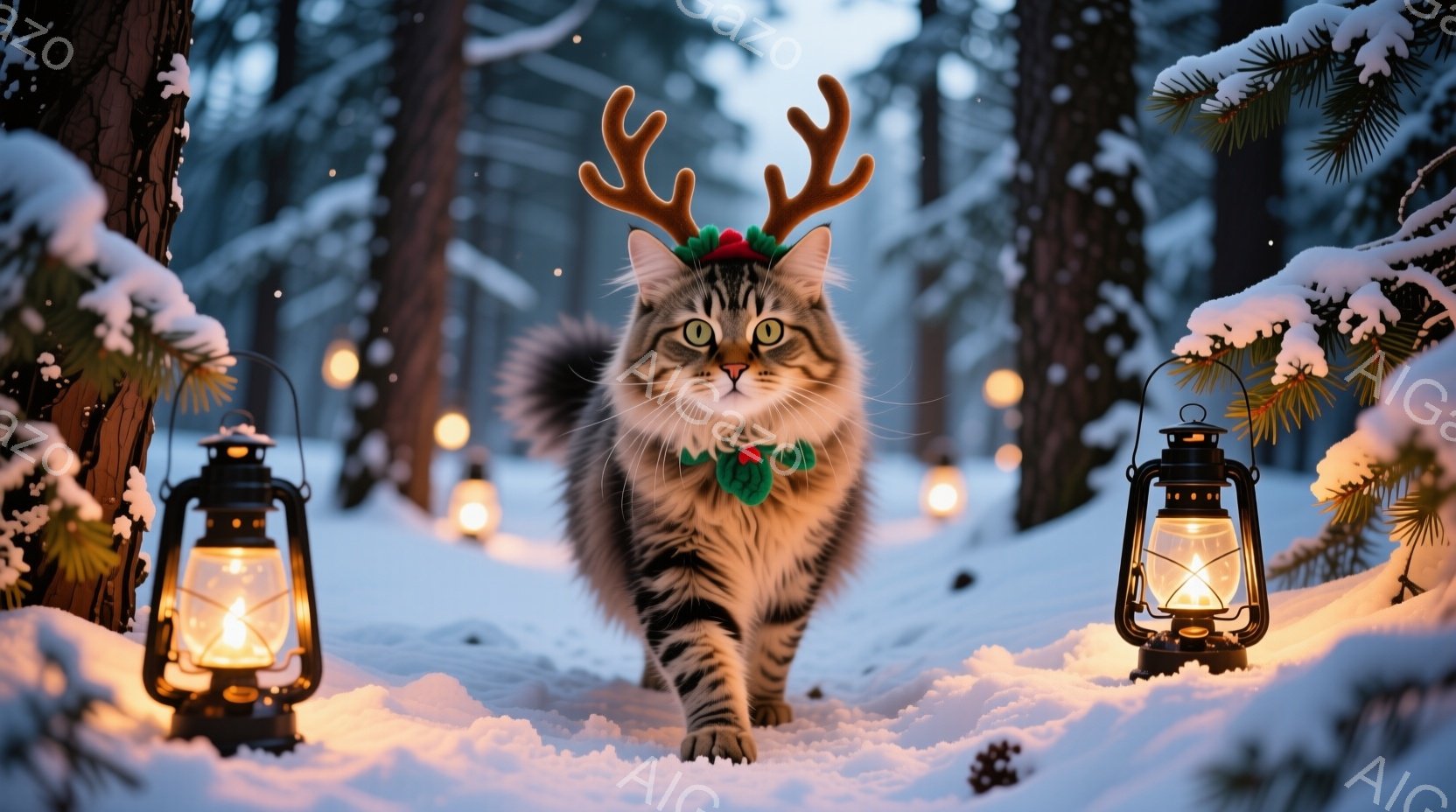 この無料AI生成画像「ふわふわの縞模様の子猫が、雪の結晶が舞うクリスマスのオーナメントであるスノーグローブに前足を伸ばして触れようとしています。背景にはぼんやりと暖色のキャンドルの光が灯り、白い毛布の上に置かれたスノーグローブと子猫を照らし出しています。全体的に、暖かく、冬の穏やかな雰囲気を醸し出しており、子猫の好奇心旺盛な表情が可愛らしさを引き立てています。」は、2025年10月24日に作成されました。 サイズは 1664×928px の高解像度で、商用利用も可能なフリー素材として提供しています。