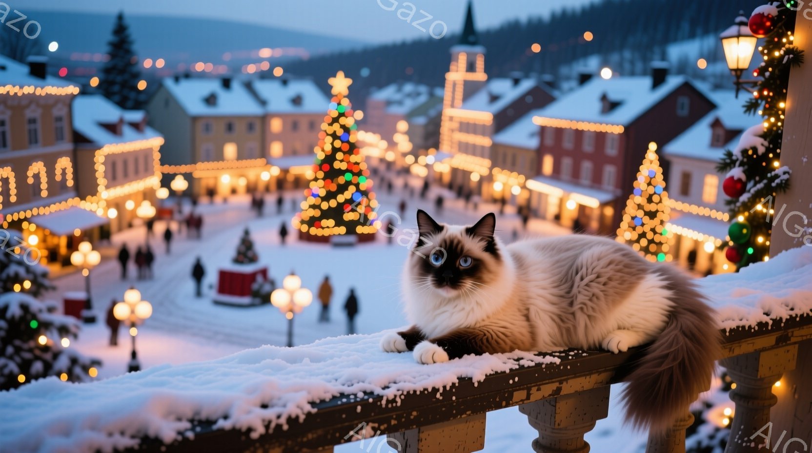 この無料AI生成画像「白と茶色の美しい猫が、赤いサンタの衣装を着てソリに乗っています。ソリは金色の装飾が施され、小さな星が散りばめられています。背景には緑色のクリスマスツリーとプレゼントがあり、雪が降る冬の暖かくお祝いの雰囲気を作り出しています。」は、2025年10月24日に作成されました。 サイズは 1664×928px の高解像度で、商用利用も可能なフリー素材として提供しています。
