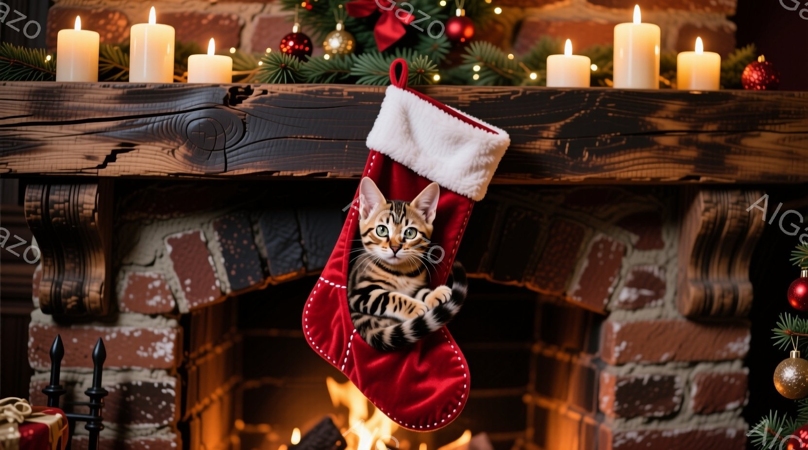 この無料AI生成画像「茶色のトラ柄の猫が、赤いサンタの帽子を被って、雪の積もった家の外の階段に座っています。背景には、クリスマス飾りのついた玄関ドアと、赤い提灯と装飾が施された植物が見え、雪が静かに降っています。全体的に、温かく、お祝いムード溢れる冬の光景です。」は、2025年10月24日に作成されました。 サイズは 1664×928px の高解像度で、商用利用も可能なフリー素材として提供しています。