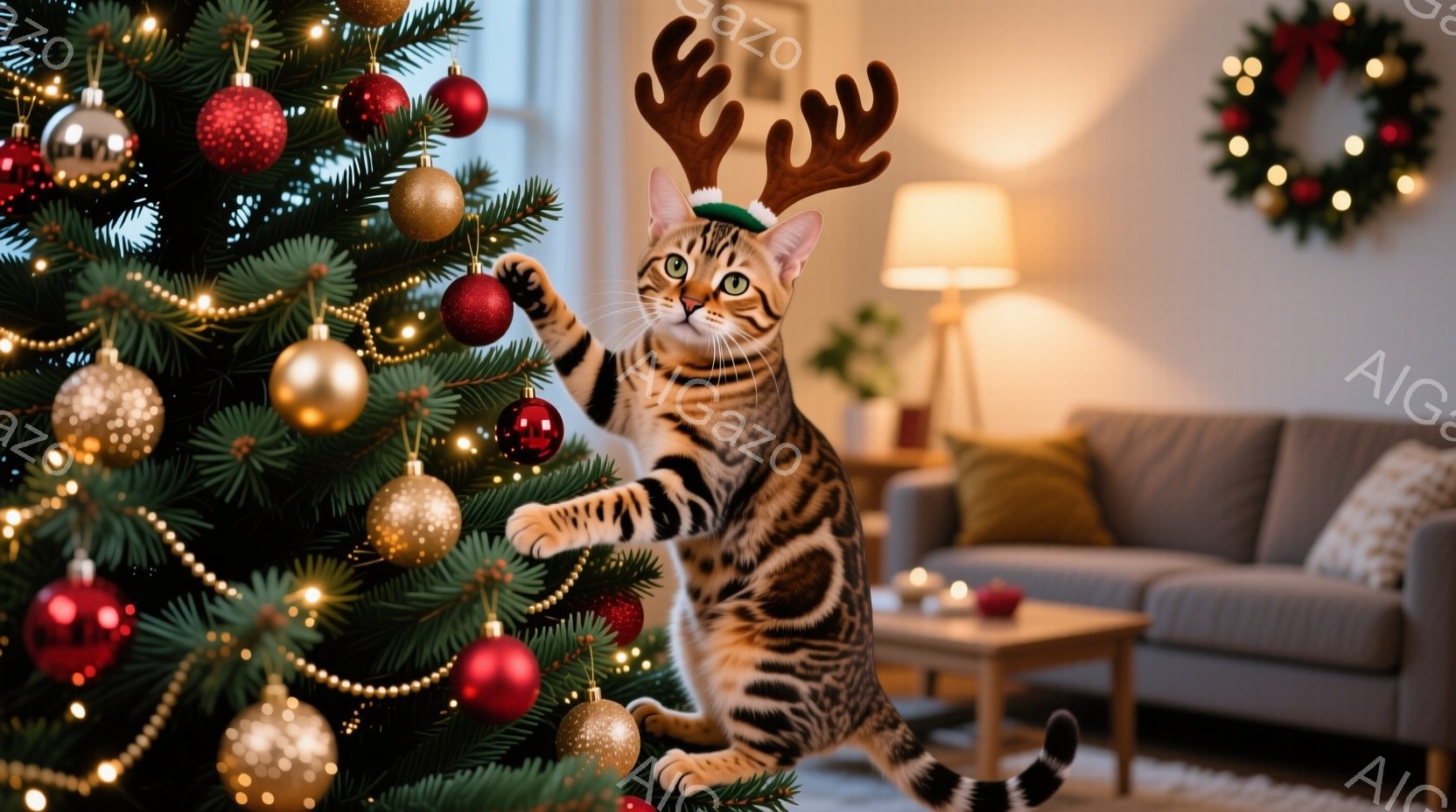 この無料AI生成画像「赤いクリスマスストッキングの中に、縞模様の小さな子猫が丸まって座っています。暖炉のレンガ造りの背景と、点灯したキャンドルやクリスマスツリーの飾り付けが暖かく、お祝いの雰囲気を醸し出しています。子猫は好奇心旺盛そうにカメラを見つめており、クリスマスの穏やかなひとコマを捉えています。」は、2025年10月24日に作成されました。 サイズは 1664×928px の高解像度で、商用利用も可能なフリー素材として提供しています。