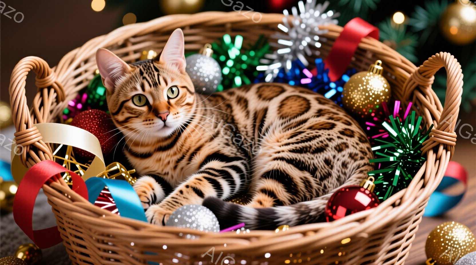 この無料AI生成画像「縞模様の小さな子猫が、クリスマスオーナメントと電飾の間を駆け抜けている。背景にはぼやけた緑のクリスマスツリーと、暖色系の光が散りばめられた室内が広がっており、華やかで遊び心のある雰囲気を醸し出している。子猫の表情は遊び心に満ちており、その姿は可愛らしいクリスマスの光景をさらに引き立てている。」は、2025年10月24日に作成されました。 サイズは 1664×928px の高解像度で、商用利用も可能なフリー素材として提供しています。
