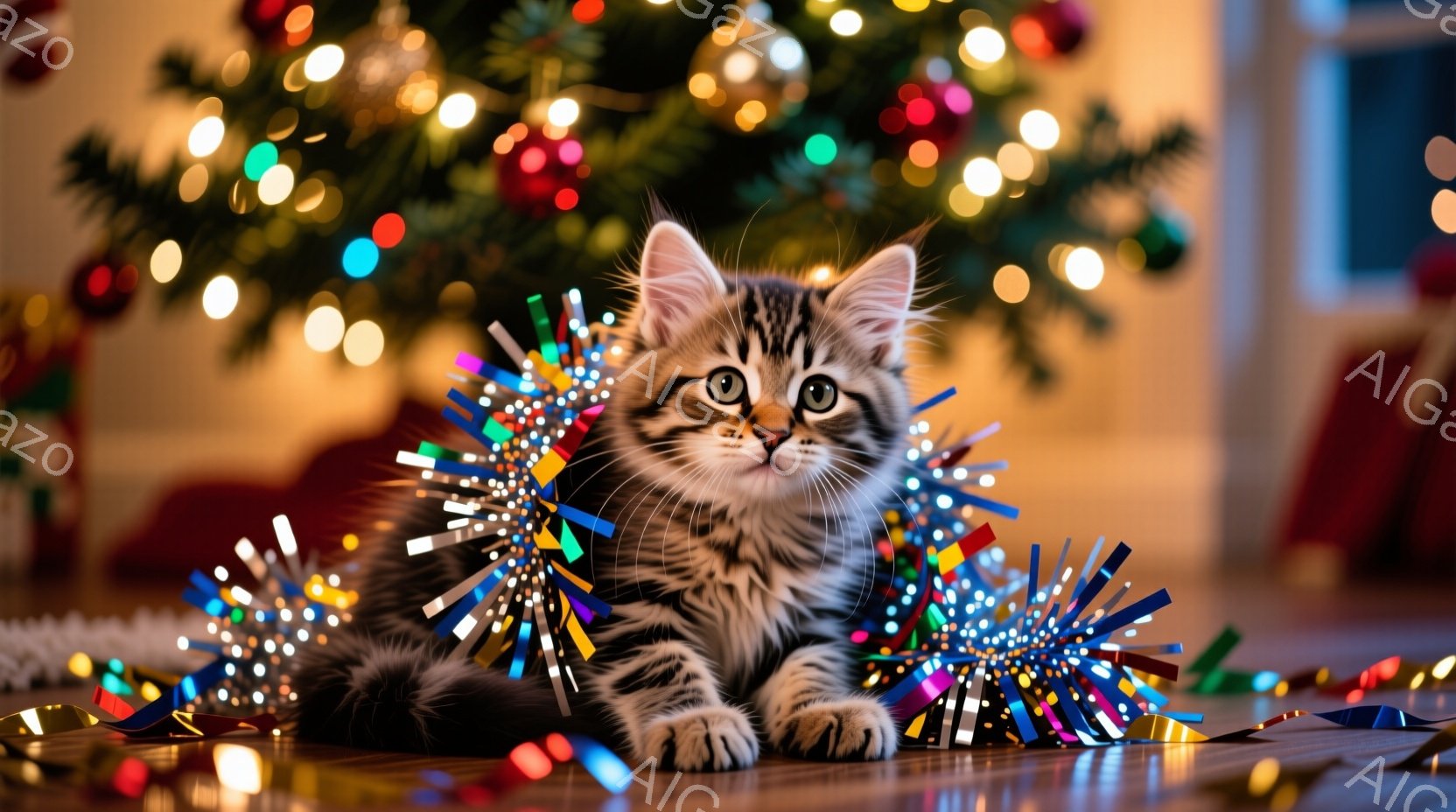 この無料AI生成画像「茶色と黒の縞模様の猫が、赤い蝶ネクタイをつけ、雪で覆われた手すりに座ってこちらを見ている。背景には、クリスマスツリーが輝き、雪景色の中にカラフルな建物が並んでいる賑やかな広場が広がり、冬の祭りの雰囲気を醸し出している。全体的に、暖かく、お祝いの気持ちに満ちた、魅力的な光景である。」は、2025年10月24日に作成されました。 サイズは 1664×928px の高解像度で、商用利用も可能なフリー素材として提供しています。