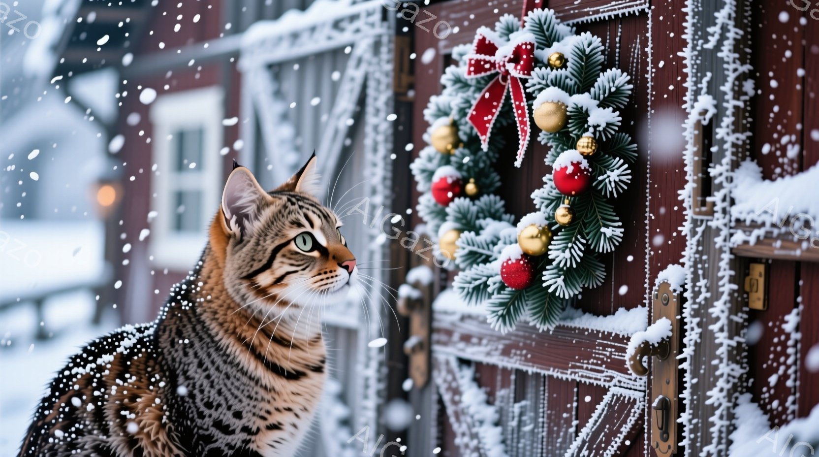 この無料AI生成画像「ふわふわとしたクリーム色の毛並みを持つ子猫が、クリスマスらしい籐製のカゴの中にいます。カゴの中には、ジンジャーブレッドマンやキャンディケーンが飾られており、暖かくお祝いの雰囲気が漂っています。背景にはぼやけたクリスマスツリーの光が散りばめられ、冬の праздничное настроение を高めています。」は、2025年10月24日に作成されました。 サイズは 1664×928px の高解像度で、商用利用も可能なフリー素材として提供しています。