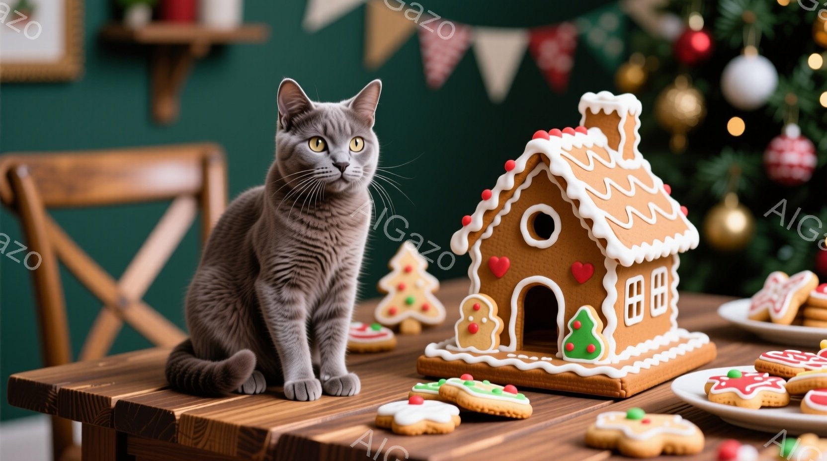 この無料AI生成画像「灰色の猫がサンタクロースの帽子と赤いマントを着て、雪で覆われた屋根の上で座っています。背景には、ぼんやりと見える建物と、点灯したキャンドルと電球で飾られた屋根があり、冬の暖かい雰囲気を醸し出しています。猫は正面をまっすぐ見ており、落ち着いた表情で冬の景色を眺めているようです。」は、2025年10月24日に作成されました。 サイズは 1664×928px の高解像度で、商用利用も可能なフリー素材として提供しています。