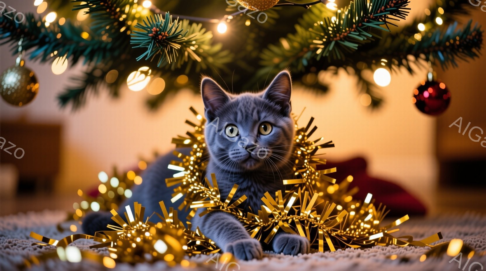この無料AI生成画像「灰色の猫が、クリスマスの飾り付けがされた柵の上に座っており、赤い蝶ネクタイを締めています。背景には雪景色の中に、ライトアップされたカラフルな建物やクリスマスツリーが広がり、多くの人々が歩いています。全体的に暖かく、お祝いムードにあふれた冬の光景です。」は、2025年10月24日に作成されました。 サイズは 1664×928px の高解像度で、商用利用も可能なフリー素材として提供しています。