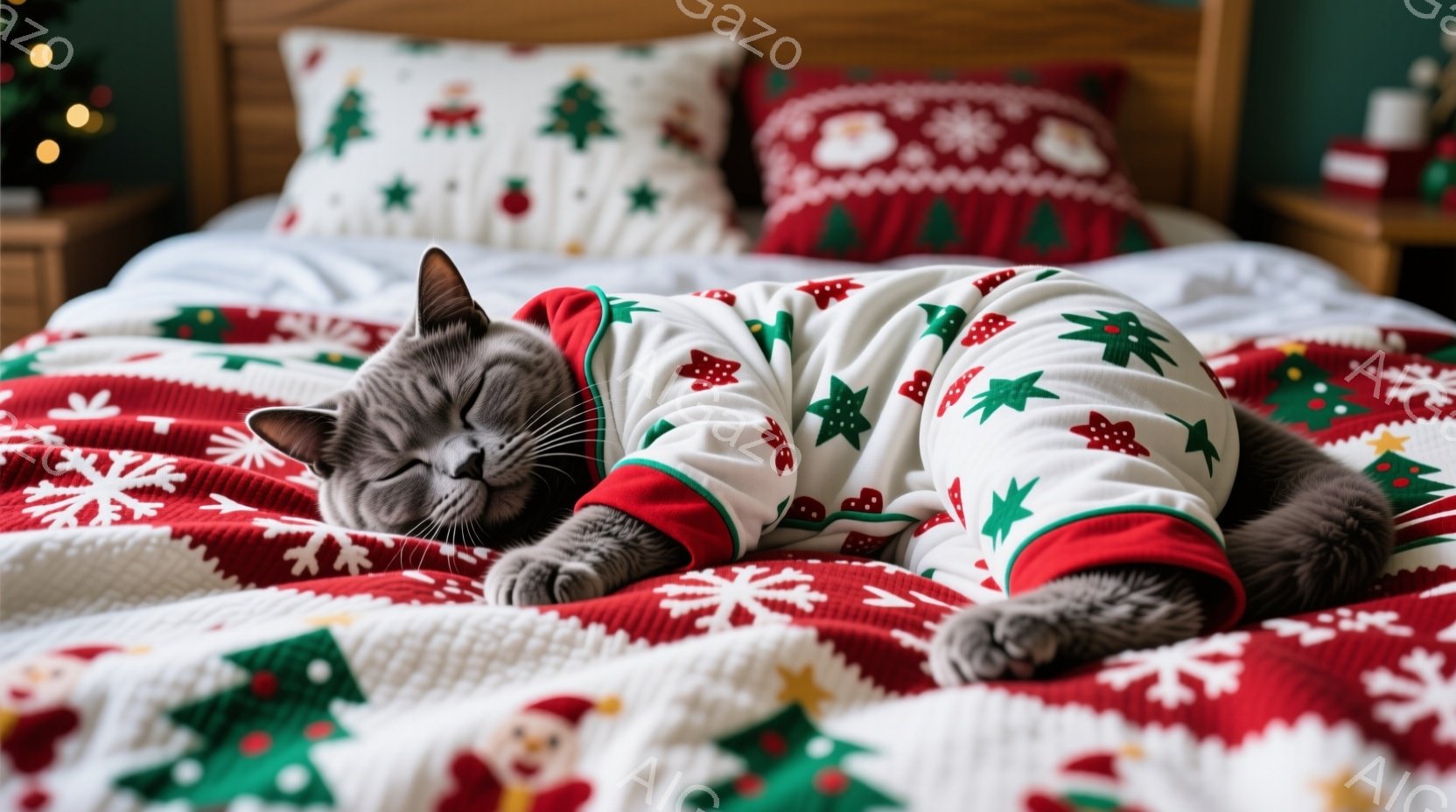 この無料AI生成画像「灰色の小さな子猫が赤いテーブルクロスの上に立っており、片方の前足で緑と白のキャンディケーンを掴んでいます。背景には、ぼやけたクリスマスツリーと食事が並んだ皿が見え、暖かくお祝いの雰囲気です。子猫は好奇心と遊び心に満ちた表情で、クリスマスシーズンの楽しい光景を演出しています。」は、2025年10月24日に作成されました。 サイズは 1664×928px の高解像度で、商用利用も可能なフリー素材として提供しています。