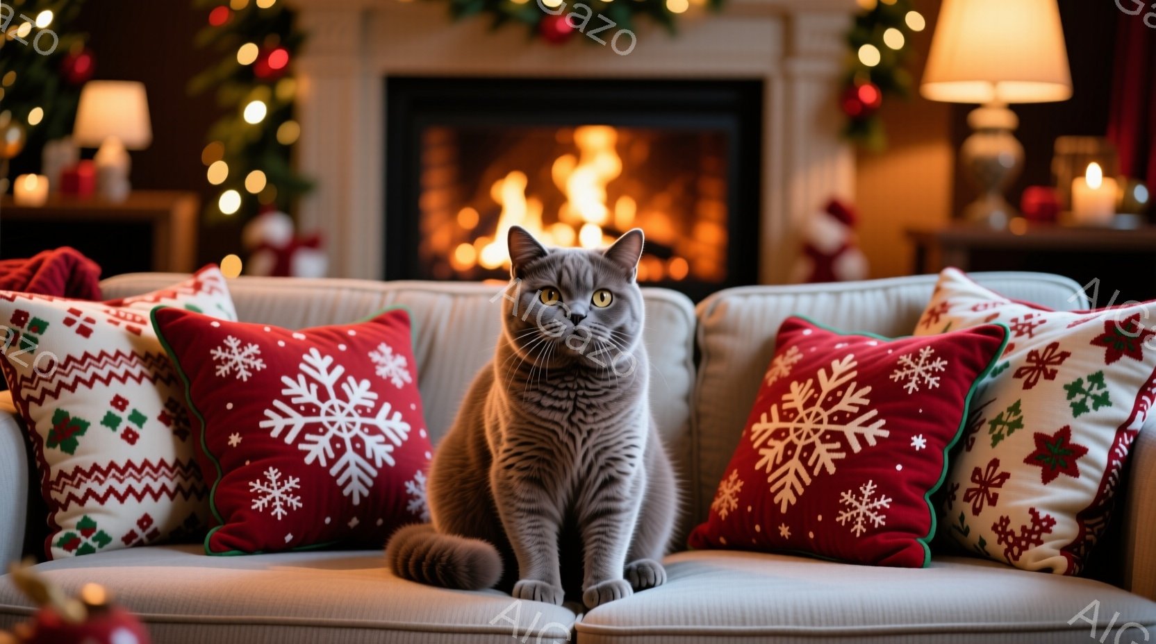 この無料AI生成画像「明るい茶色のバスケットの中に、灰色の毛並みを持つ猫がゆったりと横たわっています。猫は金色の瞳でこちらを見ており、表情は穏やかでリラックスしています。バスケットの周りには赤いリボンや金色のオーナメントが散りばめられており、クリスマスの華やかな雰囲気を醸し出しています。」は、2025年10月24日に作成されました。 サイズは 1664×928px の高解像度で、商用利用も可能なフリー素材として提供しています。