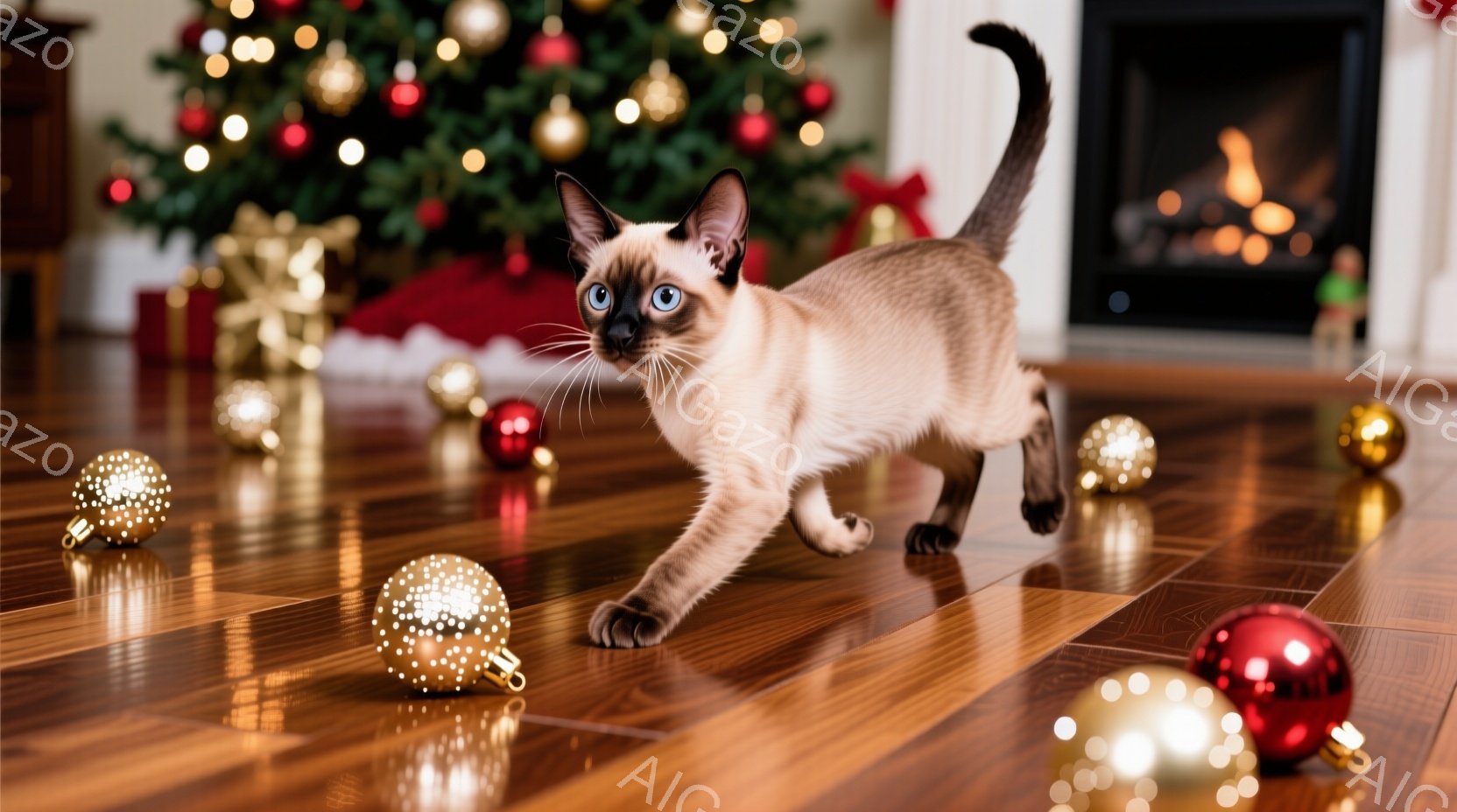 この無料AI生成画像「茶色のそりの中に、可愛らしいシャム猫が座っています。猫はまっすぐ前を見ており、その目は鮮やかな青色です。背景にはクリスマスツリー、プレゼント、そしてキャンディケーンがあり、全体的に暖かく、お祝いムードに満ちた雰囲気です。」は、2025年10月24日に作成されました。 サイズは 1664×928px の高解像度で、商用利用も可能なフリー素材として提供しています。