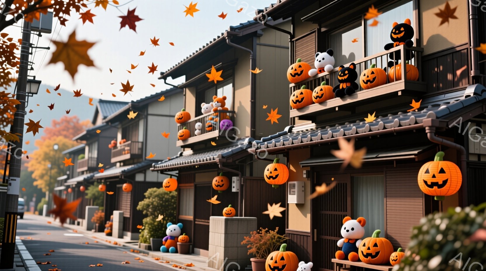 この無料AI生成画像「巨大な城への入り口には、カボチャの衣装を着た二体の番人が立っており、それぞれ手に杖を持っています。城への道は石畳で、両側に明かりが灯されたランタンが並び、ハロウィーンの飾り付けが施された旗が城壁に吊るされています。背景には夕焼け空と城のシルエットが見え、全体的に幻想的で祝祭的な雰囲気が漂っています。」は、2025年10月24日に作成されました。 サイズは 1664×928px の高解像度で、商用利用も可能なフリー素材として提供しています。