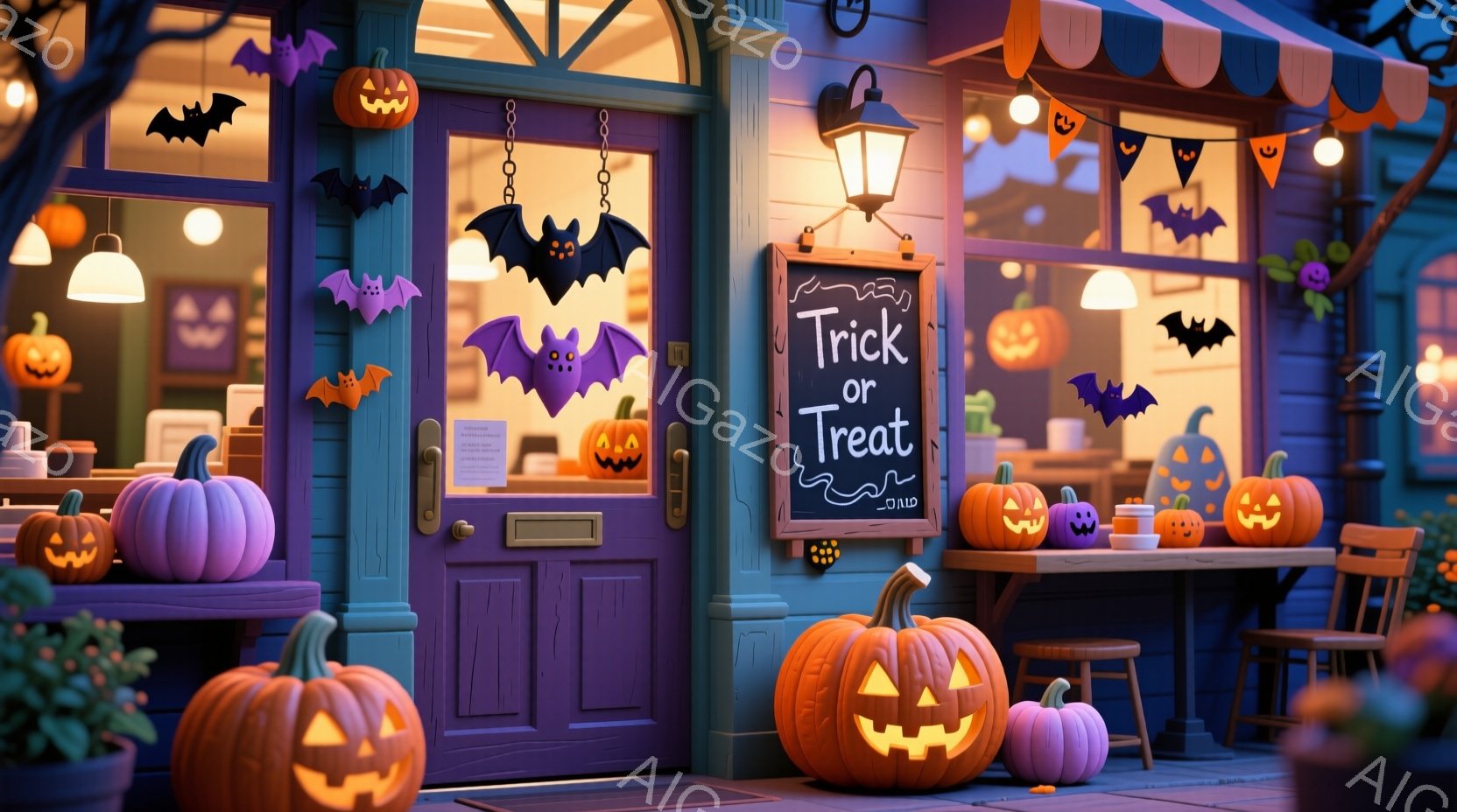 この無料AI生成画像「街並みがハロウィーンの装飾で彩られています。伝統的な日本家屋が軒を連ね、各家庭の庭やベランダには、可愛らしいジャック・オー・ランタンや抱き枕のようなキャラクターが飾られています。落ち葉が舞い散る晴れた空の下、秋の温かく、お祭り気分満載の雰囲気が感じられます。」は、2025年10月24日に作成されました。 サイズは 1664×928px の高解像度で、商用利用も可能なフリー素材として提供しています。