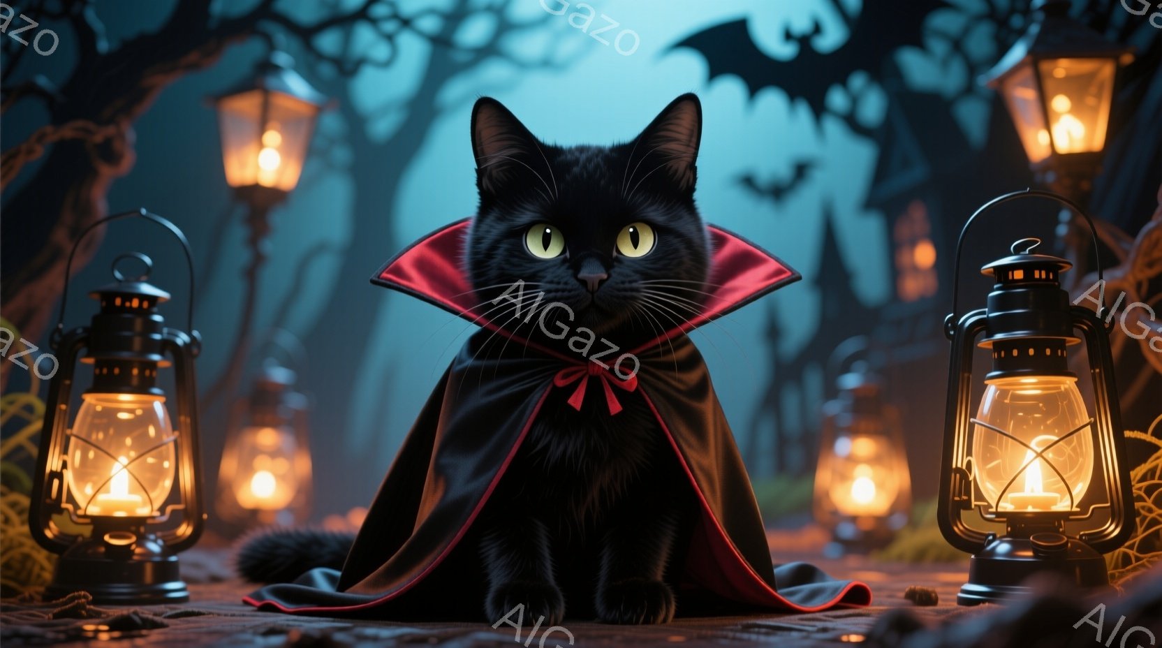 この無料AI生成画像「オレンジ色の猫が、くり抜かれたジャック・オー・ランタンの中に顔を出しています。猫は少し驚いたような表情で、前足を前に出し、まるで何かを見張っているかのようです。周囲には多くの白いキャンドルが配置され、薄暗い中で幻想的な雰囲気を醸し出しています。」は、2025年10月24日に作成されました。 サイズは 1664×928px の高解像度で、商用利用も可能なフリー素材として提供しています。