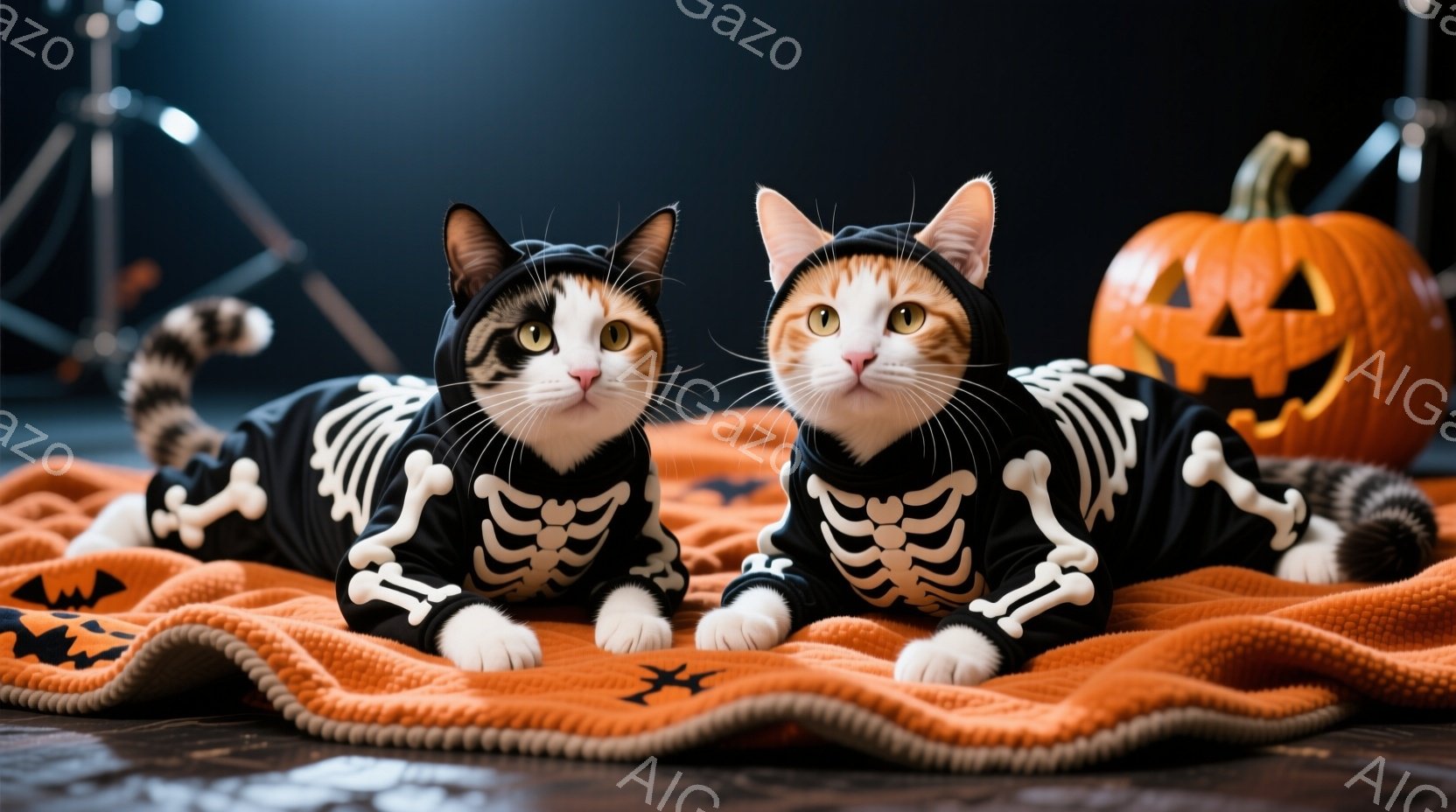 この無料AI生成画像「茶色と白のまだら模様の猫が、ハロウィーンの飾り付けられた本棚に座っています。オレンジ色のジャック・オ・ランタンと電飾が棚を彩り、壁は深い緑色で、全体的に暖かく、お祝いの雰囲気です。猫は前足を揃え、静かに座っており、ハロウィーンの季節にぴったりの、居心地の良いシーンを演出しています。」は、2025年10月24日に作成されました。 サイズは 1664×928px の高解像度で、商用利用も可能なフリー素材として提供しています。