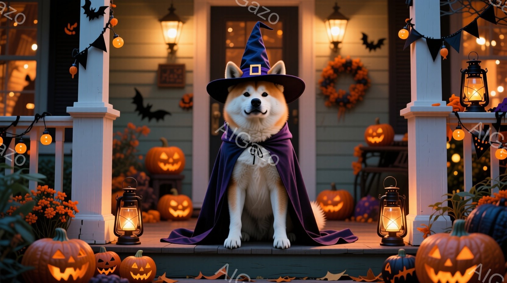 この無料AI生成画像「白い巻き毛の犬が、ハロウィーンの衣装であるカボチャの形をしたライトと白い幽霊の衣装を着ています。犬は正面を向き、少し下を見つめており、リラックスした姿勢で座っています。背景には、たくさんのジャック・オー・ランタンが灯り、暖炉と装飾されたクリスマスツリーがあり、お祝いのハロウィーンの雰囲気が漂っています。」は、2025年10月24日に作成されました。 サイズは 1664×928px の高解像度で、商用利用も可能なフリー素材として提供しています。