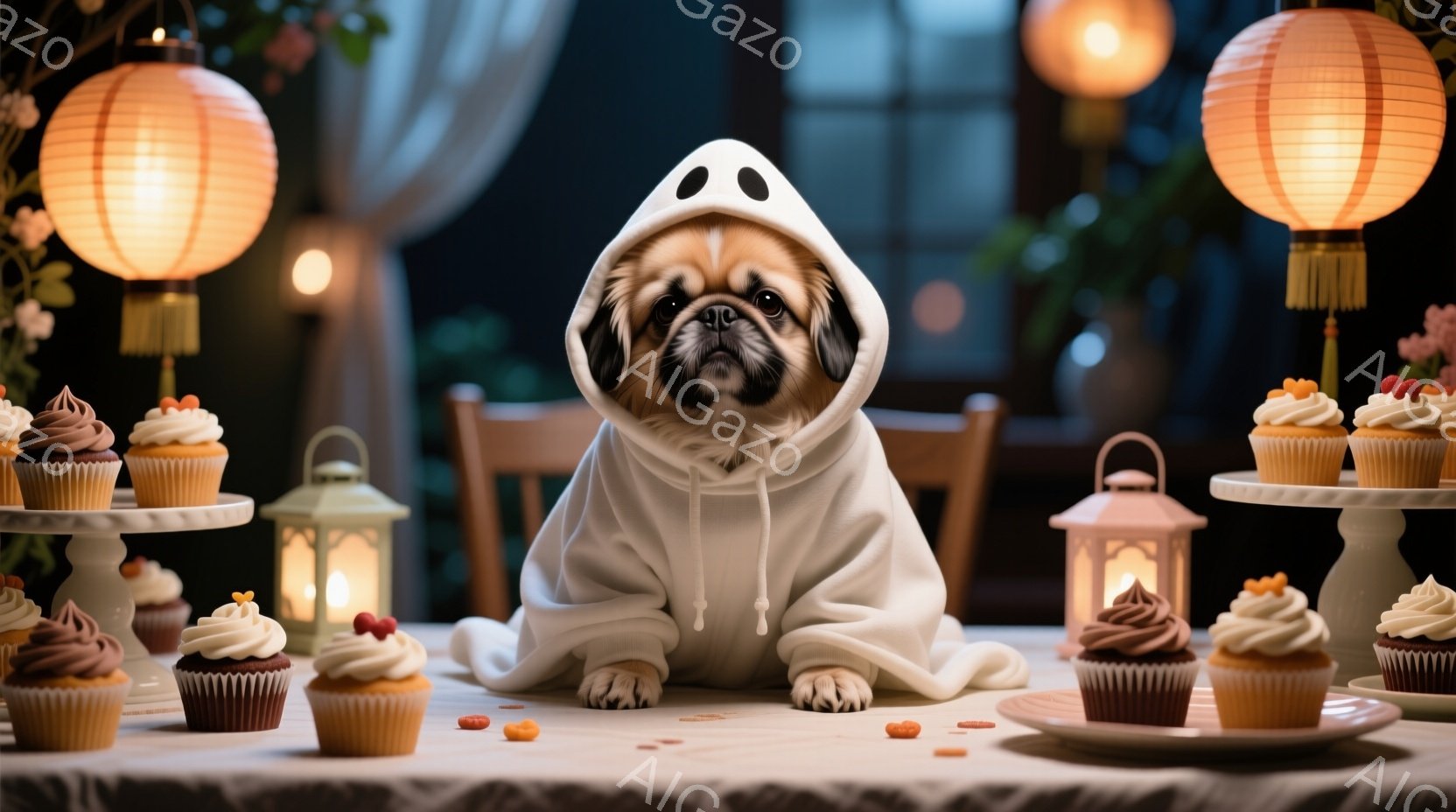 この無料AI生成画像「白い毛並みの大型犬が2匹、ハロウィーンの飾り付けられた背景に座っています。1匹は白い布を被り幽霊の仮装をしており、もう1匹は自然な姿で、どちらも穏やかな表情をしています。背景にはカボチャのランタンや落ち葉が散らばり、暗い森の中の幻想的なハロウィーンの雰囲気を醸し出しています。」は、2025年10月24日に作成されました。 サイズは 1664×928px の高解像度で、商用利用も可能なフリー素材として提供しています。