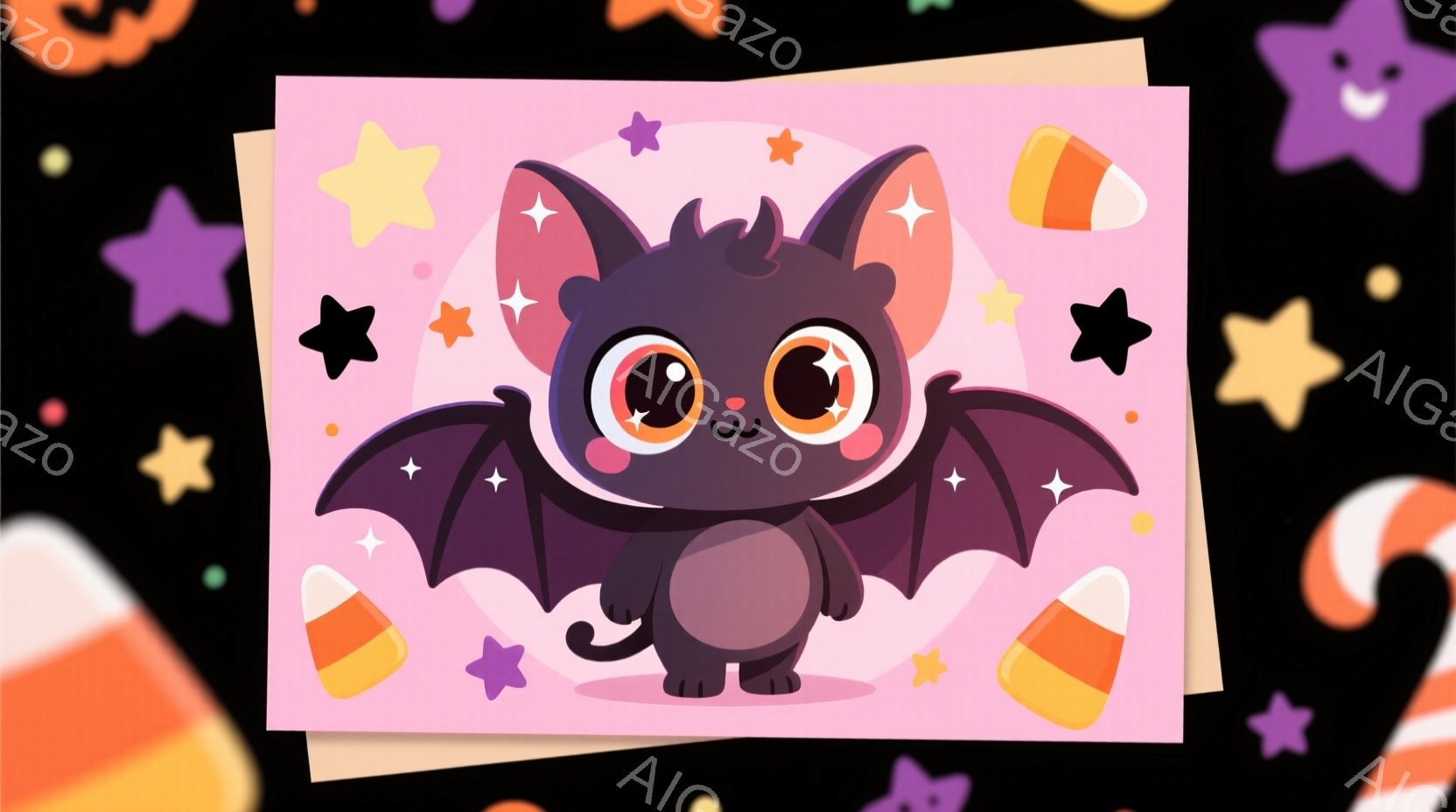 この無料AI生成画像「かわいらしい黒い子猫の幽霊が描かれており、大きな目と笑顔が印象的です。背景はピンク色で、キャンディコーンや星、ジャックオーランタンが散りばめられており、ハロウィンの雰囲気を感じさせます。全体的に明るく、楽しく、愛らしいハロウィーンのイラストです。」は、2025年10月24日に作成されました。 サイズは 1664×928px の高解像度で、商用利用も可能なフリー素材として提供しています。