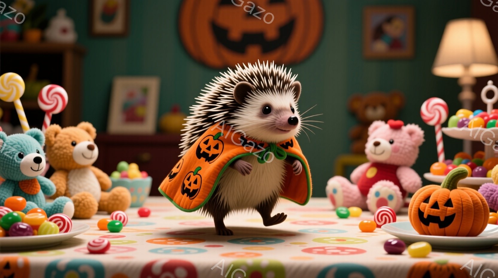 この無料AI生成画像「切り開かれたハロウィンのカボチャの中に、小さなハリネズミが丸まって入っています。カボチャはジャック・オー・ランタンのように彫られており、中からオレンジ色の光が漏れ出ています。背景には、ぼんやりとした花、葉、そして点在するロウソクがあり、暖かく幻想的な雰囲気を醸し出しています。」は、2025年10月24日に作成されました。 サイズは 1664×928px の高解像度で、商用利用も可能なフリー素材として提供しています。