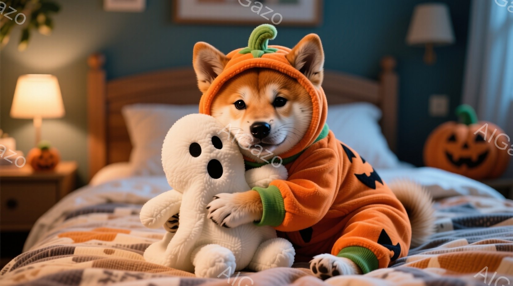 この無料AI生成画像「柴犬が、古い町並みの石畳の道をまっすぐ歩いてきている。頭にはハロウィーンらしい魔女の帽子をかぶり、口を開けて楽しそうにしている。背景には木造の建物が並び、提灯の灯りが暖かく、秋の夕暮れのような穏やかな雰囲気を醸し出している。」は、2025年10月24日に作成されました。 サイズは 1664×928px の高解像度で、商用利用も可能なフリー素材として提供しています。