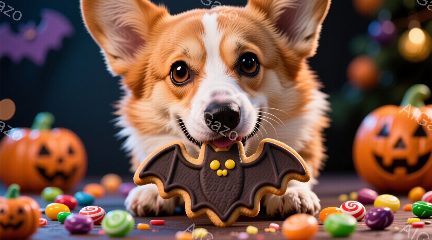 この無料AI生成画像「コルギ犬が魔女の帽子と星が散りばめられたマントを身につけ、正面を見つめて座っています。背景にはハロウィーンの装飾であるジャック・オー・ランタンが複数あり、薄暗い森の中に配置されています。全体的に、ハロウィーンの楽しい雰囲気で、愛らしい犬が中心となっています。」は、2025年10月24日に作成されました。 サイズは 1664×928px の高解像度で、商用利用も可能なフリー素材として提供しています。