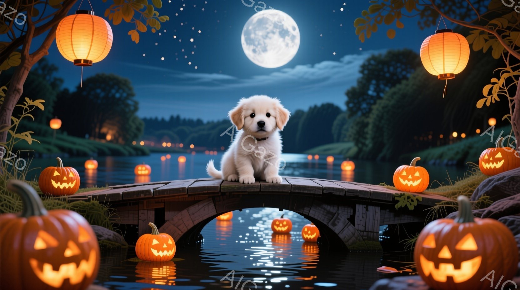 この無料AI生成画像「ヨークシャーテリアの子犬が、かぼちゃの形をしたオレンジ色のパーカーを着て、木製の床の上に座っています。周りには、くり抜かれて光るジャック・オー・ランタンが置かれ、背景にはぼんやりと夜空と他の光るカボチャが見えます。全体的に、ハロウィーンの雰囲気で、可愛らしく、温かい印象を与えます。」は、2025年10月24日に作成されました。 サイズは 1664×928px の高解像度で、商用利用も可能なフリー素材として提供しています。