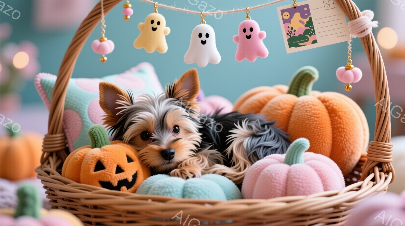この無料AI生成画像「長毛のヨークシャーテリアが、ハロウィーンをイメージしたコウモリ型のクッキーを口元に近づけています。背景にはオレンジ色のジャック・オ・ランタンと、カラフルなキャンディが散らばっており、ハロウィーンの楽しい雰囲気を演出しています。犬は前足を伸ばし、クッキーに興味津々な表情をしています。」は、2025年10月24日に作成されました。 サイズは 1664×928px の高解像度で、商用利用も可能なフリー素材として提供しています。