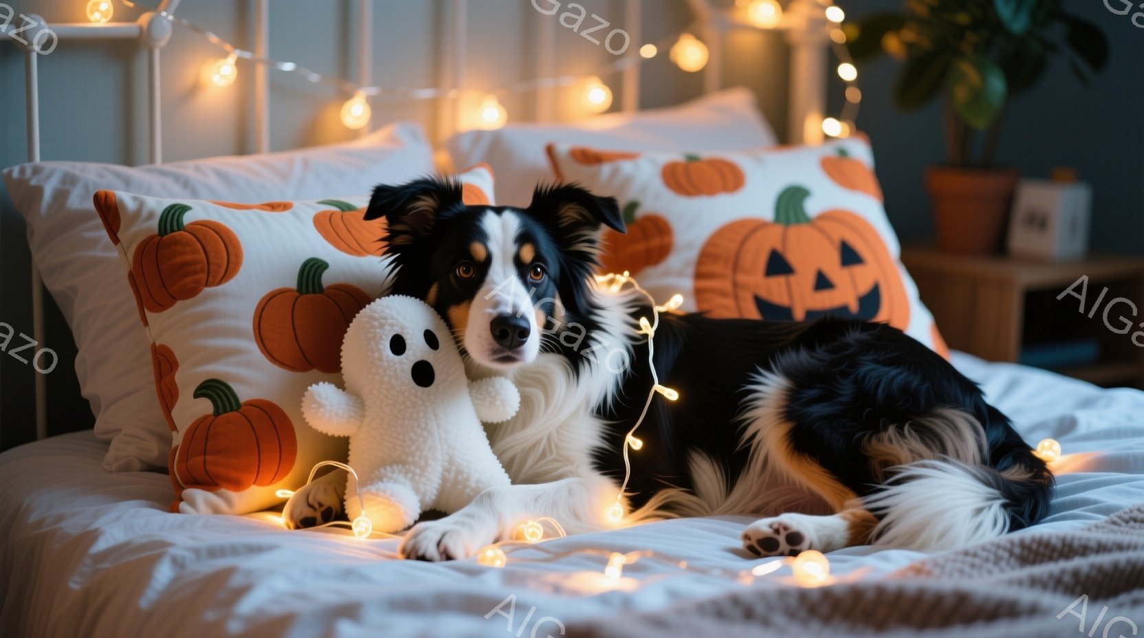 この無料AI生成画像「ハロウィーンの装飾が施された店の前に、翼をつけた犬が立っている。犬は黒と白の毛並みで、自信に満ちた表情をしている。背景には、カボチャのランタンやキャンディー、そして紫と黒の装飾が施された店があり、お祭りの雰囲気を醸し出している。」は、2025年10月24日に作成されました。 サイズは 1664×928px の高解像度で、商用利用も可能なフリー素材として提供しています。