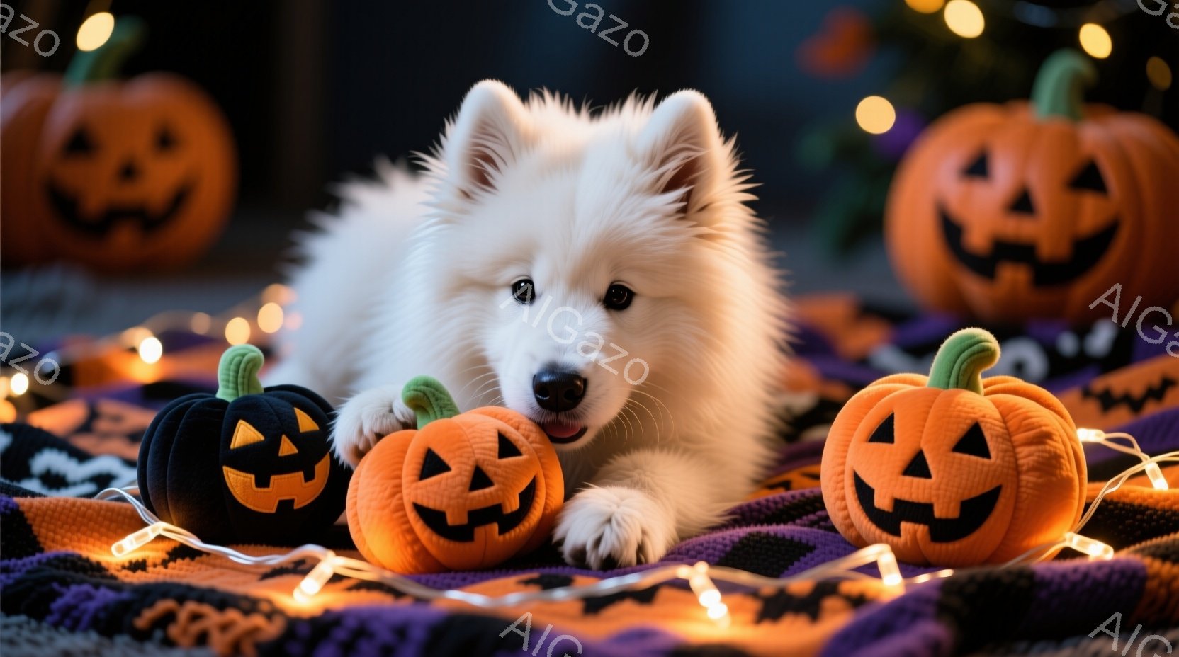 この無料AI生成画像「白い毛並みの犬が骸骨のコスチュームを着て、ハロウィンの飾り付けられた背景に佇んでいます。犬はまっすぐ前を見ており、少し微笑んでいるような表情をしています。背景には、パステルカラーの風船と幽霊の形をした風船が浮いており、お祝いムードを盛り上げています。」は、2025年10月24日に作成されました。 サイズは 1664×928px の高解像度で、商用利用も可能なフリー素材として提供しています。