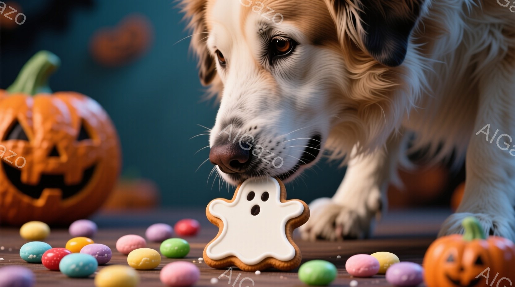 この無料AI生成画像「黒い背景の上に、可愛らしいボーダーコリーが幽霊の形をしたクッキーに鼻を近づけています。周囲にはカラフルなマカロンや小さなキャンディが散りばめられ、背景にはジャック・オー・ランタンが配置されています。ハロウィーンを連想させる、温かく楽しい雰囲気の写真です。」は、2025年10月24日に作成されました。 サイズは 1664×928px の高解像度で、商用利用も可能なフリー素材として提供しています。