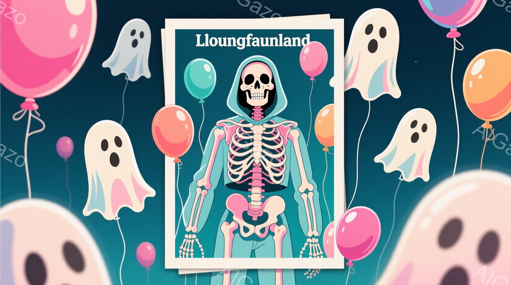 この無料AI生成画像「白い枠の中に、ピンクのジャケットとズボンを身につけた骸骨が立っている。骸骨は少し微笑んでいるようで、少しユーモラスな印象を与える。背景は暗い青色で、様々な色の風船や幽霊が浮かんでおり、お祭りやパーティーのような楽しい雰囲気を醸し出している。」は、2025年10月24日に作成されました。 サイズは 1664×928px の高解像度で、商用利用も可能なフリー素材として提供しています。