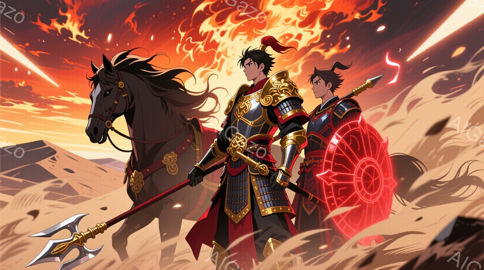 この無料AI生成画像「鮮やかな赤色の背景に、武具を身につけた男性と赤い馬が描かれている。男性は黒髪を後ろで束ね、金と黒の鎧を着用し、手に槍を持っている。馬は力強く疾走し、鎧には複雑な模様が描かれており、全体的に激しく情熱的な雰囲気を醸し出している。」は、2025年10月25日に作成されました。 サイズは 1664×928px の高解像度で、商用利用も可能なフリー素材として提供しています。