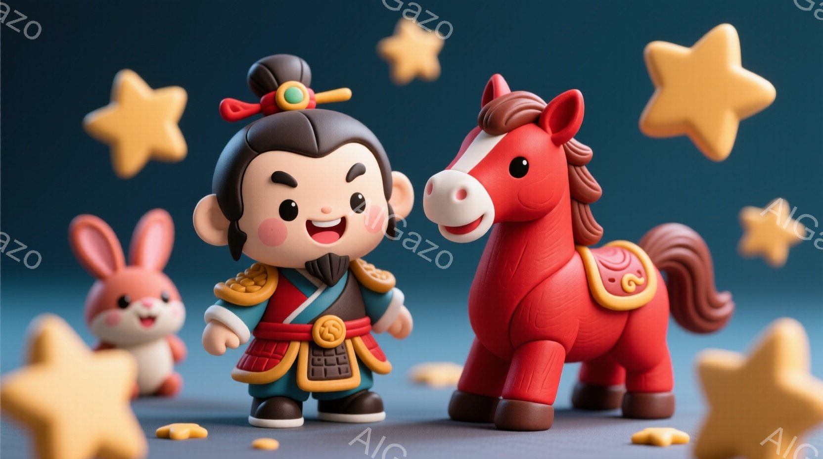 この無料AI生成画像「鮮やかな赤色の背景に、可愛らしい武士姿の少年と赤い馬が並んでいます。少年は黒い髪を後ろで結い、金色の装飾が施された鎧と赤い衣装を身につけ、満面の笑みを浮かべています。背景には、笑顔の星が浮かび、全体的に明るく、遊び心のある雰囲気を醸し出しています。」は、2025年10月25日に作成されました。 サイズは 1664×928px の高解像度で、商用利用も可能なフリー素材として提供しています。