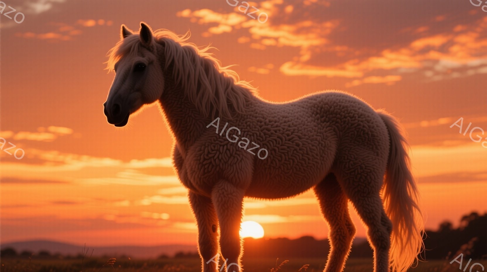 この無料AI生成画像「夕焼けを背景に、毛並みの美しい灰色がかった白い馬が正面を向いています。たてがみは長く、風になびいているように見え、顔には穏やかで落ち着いた表情が浮かんでいます。背景は燃えるようなオレンジと赤のグラデーションで、地平線にはぼんやりとした緑の草原と遠くの木々が見え、温かく幻想的な雰囲気を醸し出しています。」は、2025年10月25日に作成されました。 サイズは 1664×928px の高解像度で、商用利用も可能なフリー素材として提供しています。